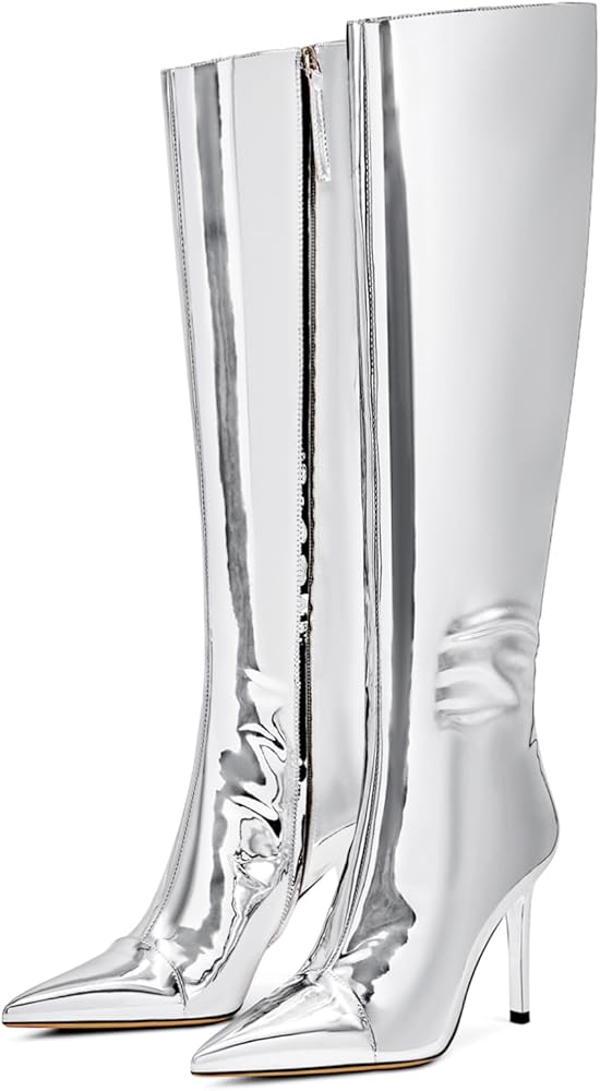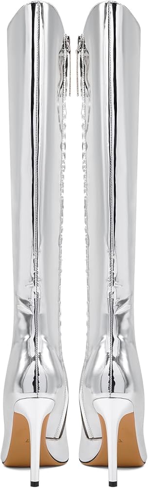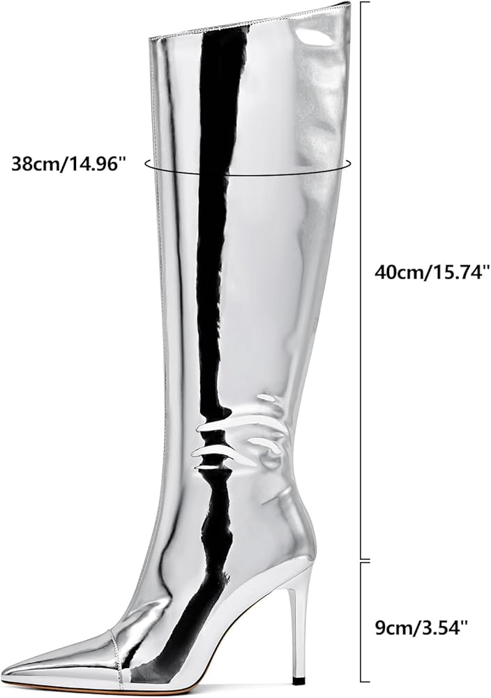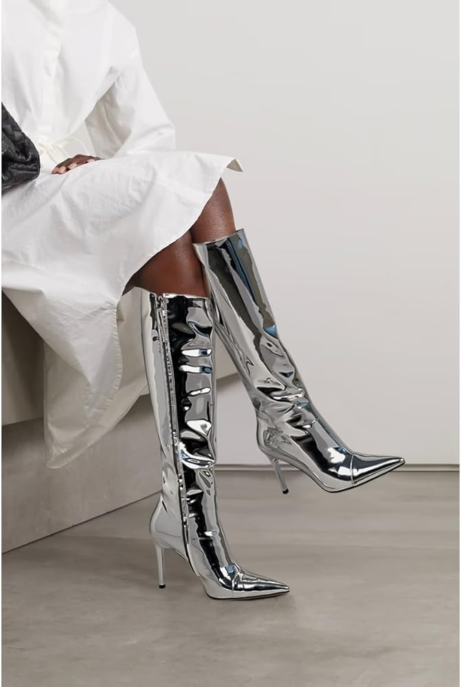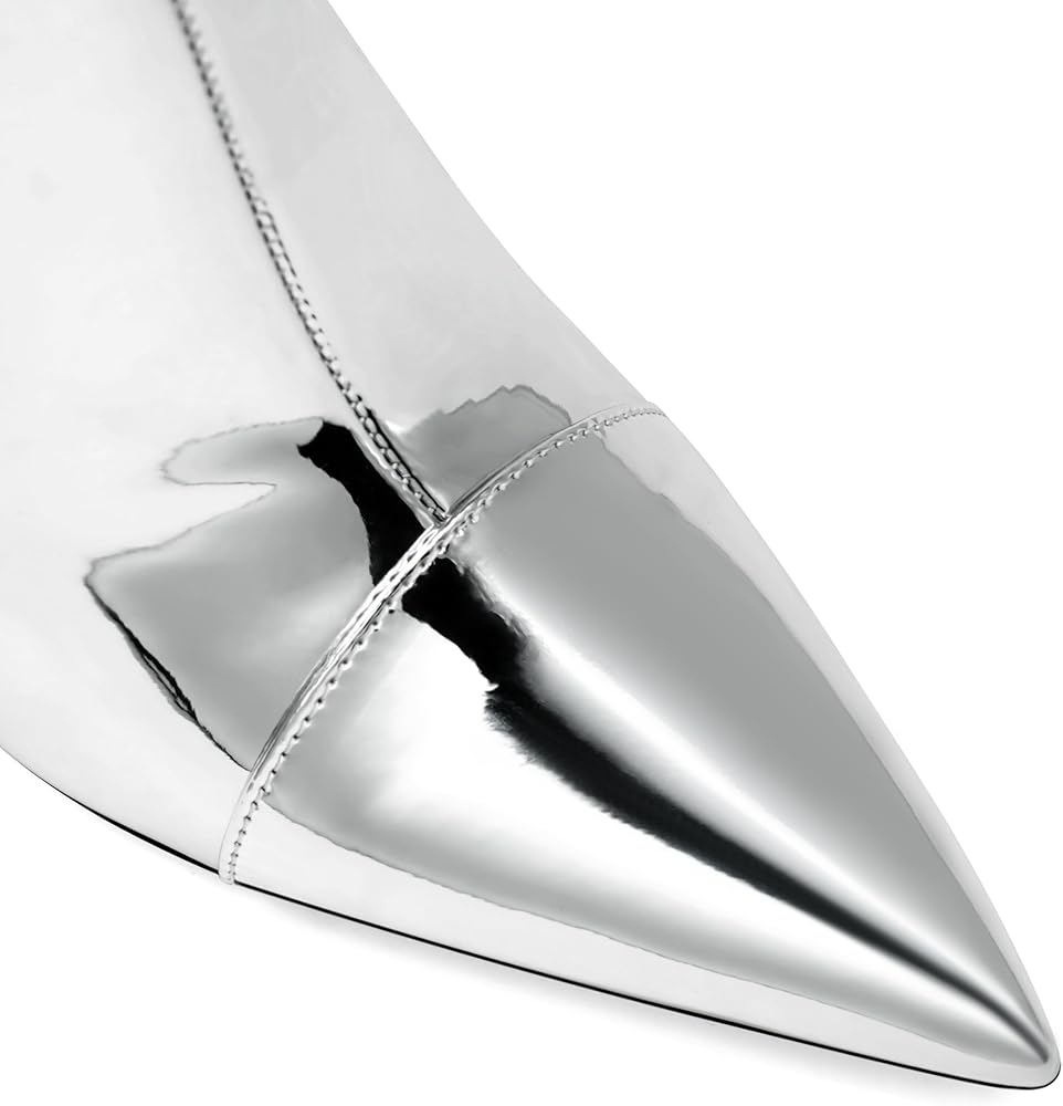 - يتميز هذا الحذاء بمقدمة مدببة وكعب عالٍ رفيع وتفاصيل من الجلد الفضي، مما يجعله أنيقًا وحديثًا.