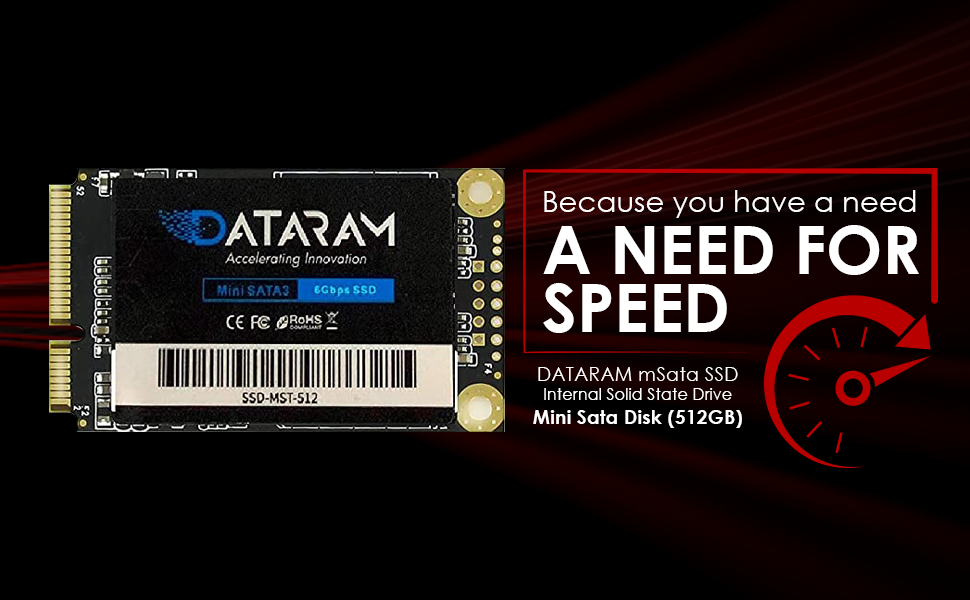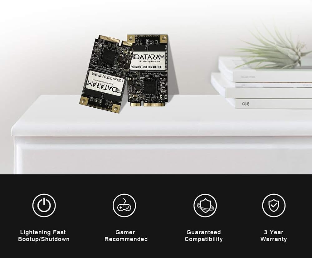 DATARAM mSata SSD, Internal Solid State Drive Mini Sata Disk 512GB. This product has a three year replacement warranty.