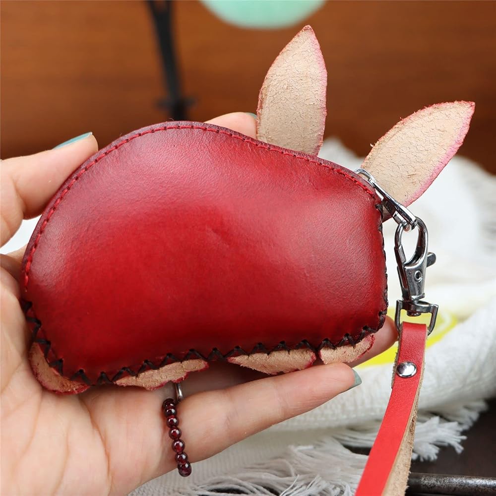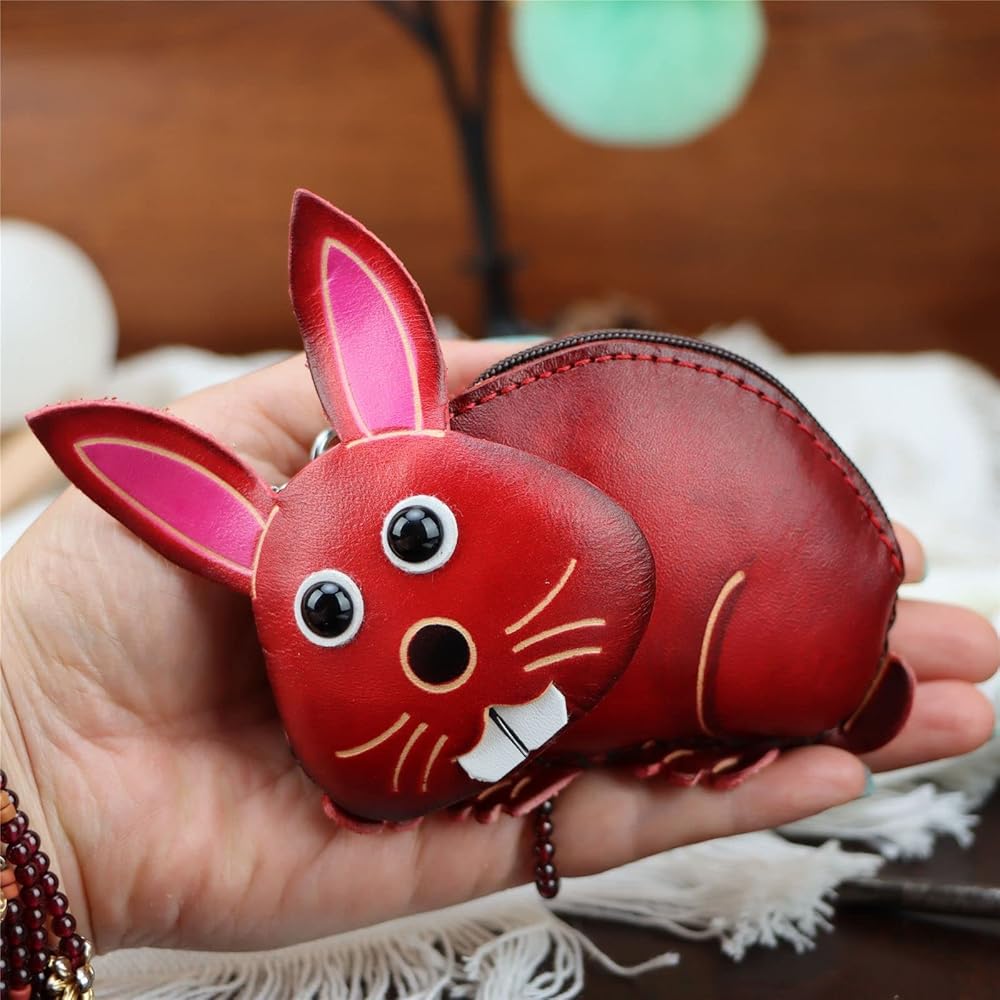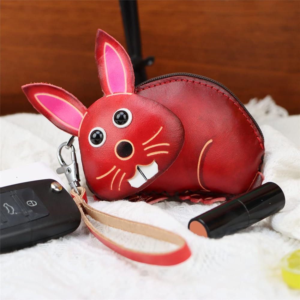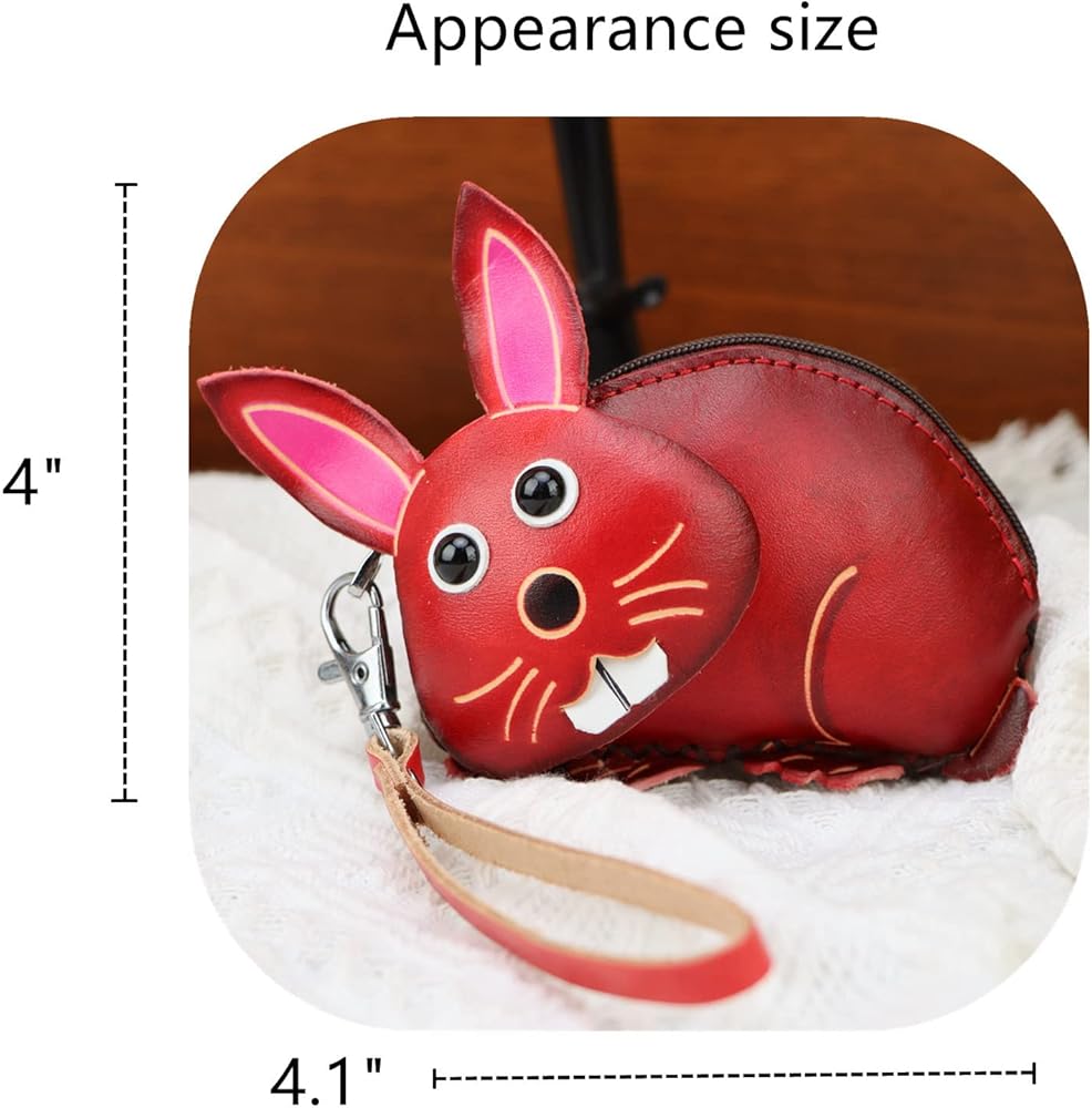 Fanyixuan Vegetable Tanned Leather Cowhide Small Rabbit Coin Purse Suitable For Storing Coins Keys Lipstick Creative Gift Clutch Bag, Red, small, Modern
