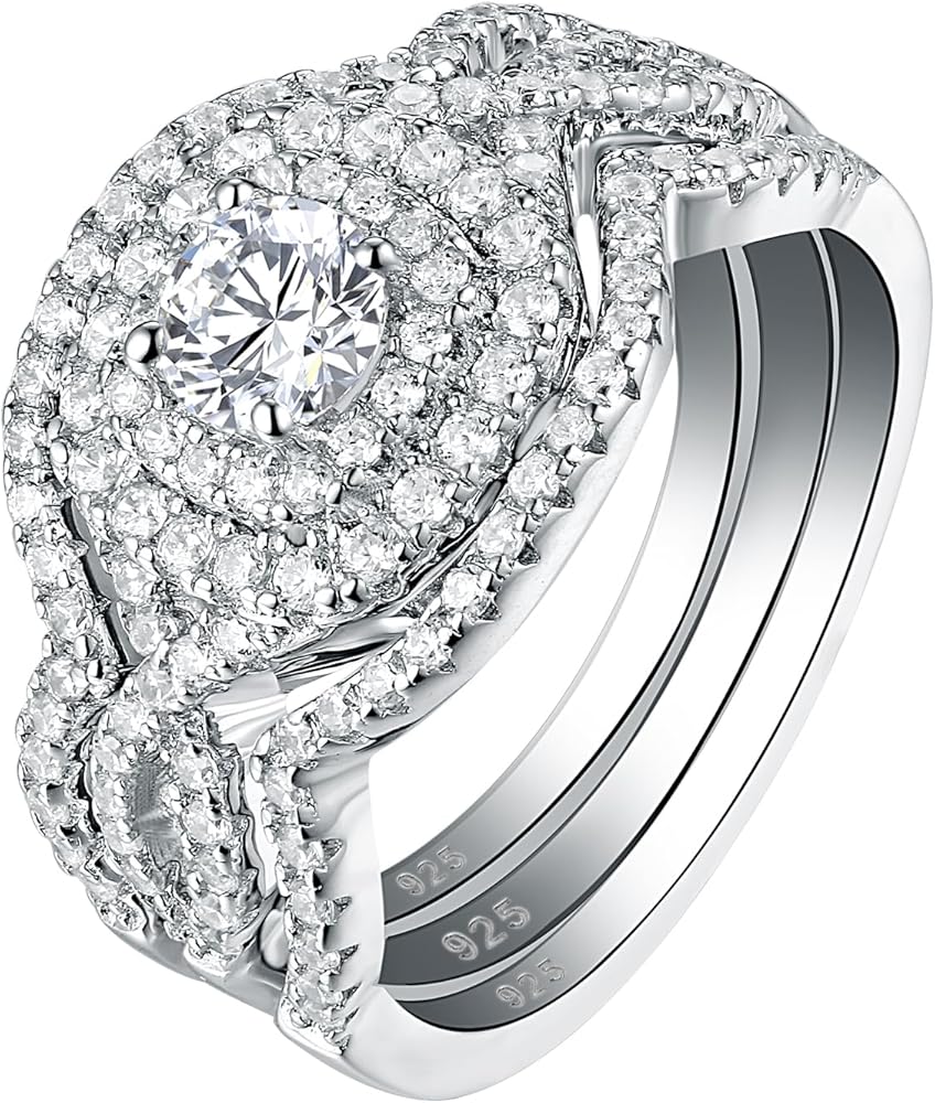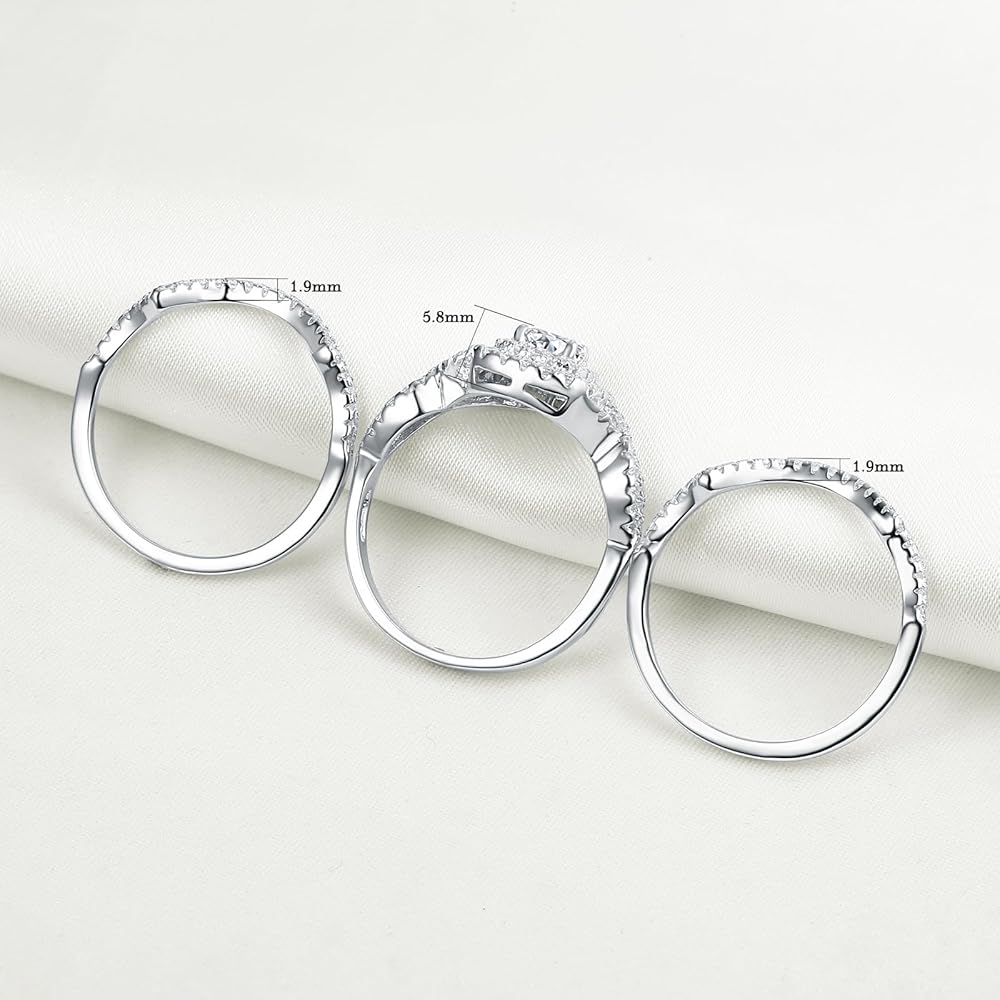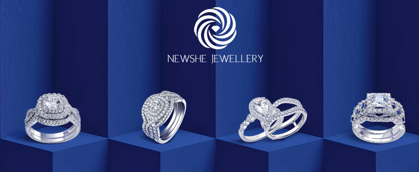 ♥المواد♥ مجموعات خواتم الزفاف Newshe للسيدات مصنوعة من الفضة الإسترلينية الصلبة بنسبة 100% / ختم 925، وخالية من النيكل والرصاص ولا تسبب الحساسية. حلقات الفضة الإسترلينية لن تحول إصبعك إلى اللون الأخضر.