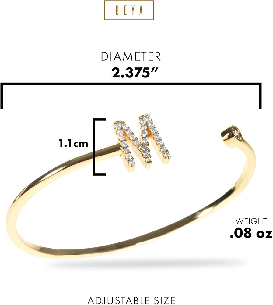 Our are here to complete your everyday style by adding a touch of elegance, shine and beauty! These bangle bracelets are crafted with attention to detail using high-end 18k gold-plated brass, that will not lose its shine and smooth finishes over time! The bangle bracelet is adorned with a superb initial charm enriched with cubic zirconia stones, that give a personal touch while completing your unique style!