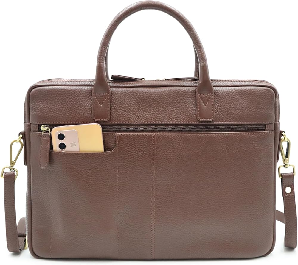 خامة فاخرة: حقيبة الكمبيوتر المحمول التنفيذية مصنوعة من جلد أصلي DDDM عالي الجودة والذي يتميز بملمس رقيق يمنح بدوره متانة عالية ومظهرًا بسيطًا. خياطة معززة، وأجزاء صلبة قوية، وسحابات موثوقة تعزز متانة الحقيبة وطول عمرها. توفر المقصورات الداخلية المبطنة وحافظة الكمبيوتر المحمول المخصصة حماية ممتازة ضد الصدمات والخدوش والتأثيرات العرضية.