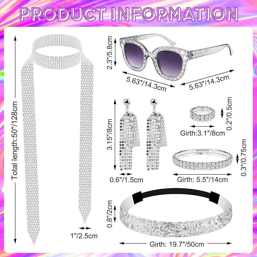 【هدية لطيفة】إكسسوارات ملابس الديسكو الخاصة بنا من السبعينيات للنساء سهلة التنسيق مع الملابس اليومية. إنها هدايا جميلة للأمهات أو الصديقات أو الأخوات في أعياد الميلاد والذكرى السنوية والكريسماس والحفلات ذات الطابع الكلاسيكي وغيرها من المهرجانات. إكسسوارات السبعينيات اللامعة والرائعة ستفاجئهم بالتأكيد!