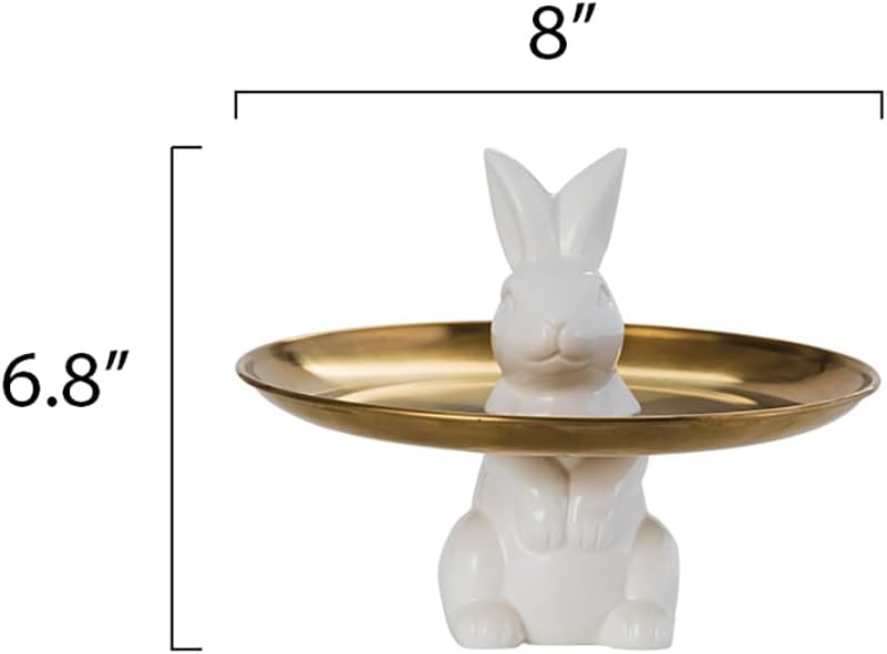 صينية مجوهرات تمثال أرنب بورسلين رائعة: تتميز صينية المجوهرات هذه بتمثال أرنب بورسلين ساحر كقطعة مركزية، مما يضيف لمسة من الغرابة والجاذبية لتخزين مجوهراتك.
