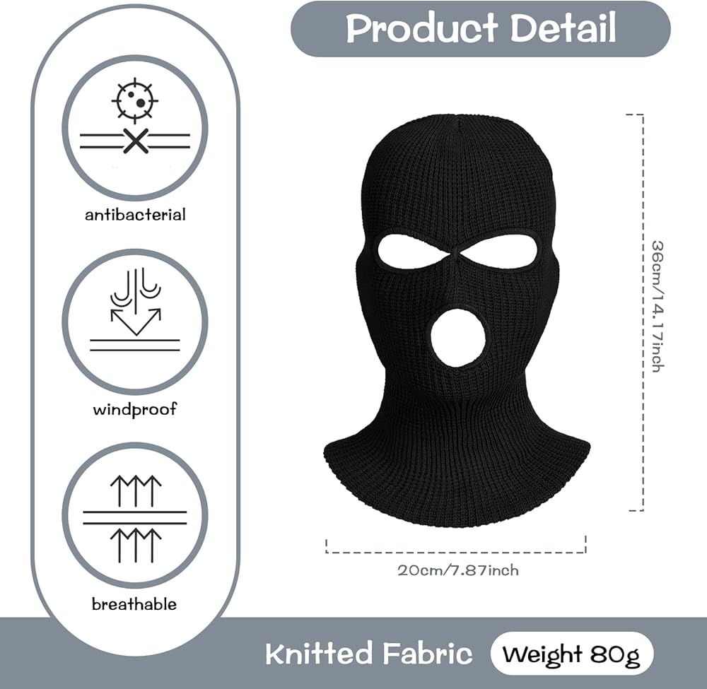 • Enough to Choose: you will receive 24 packs of 3 hole beanie face masks designed in black, enough in both quantity and color for you to use and replace, you can also share with your family and friends
