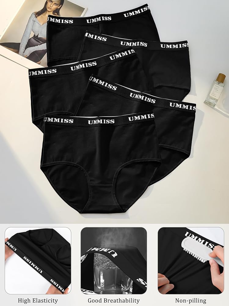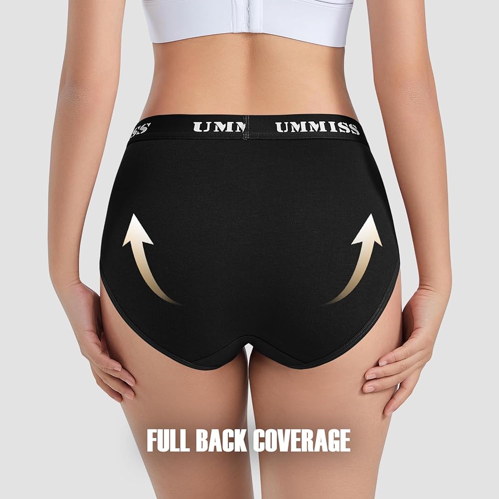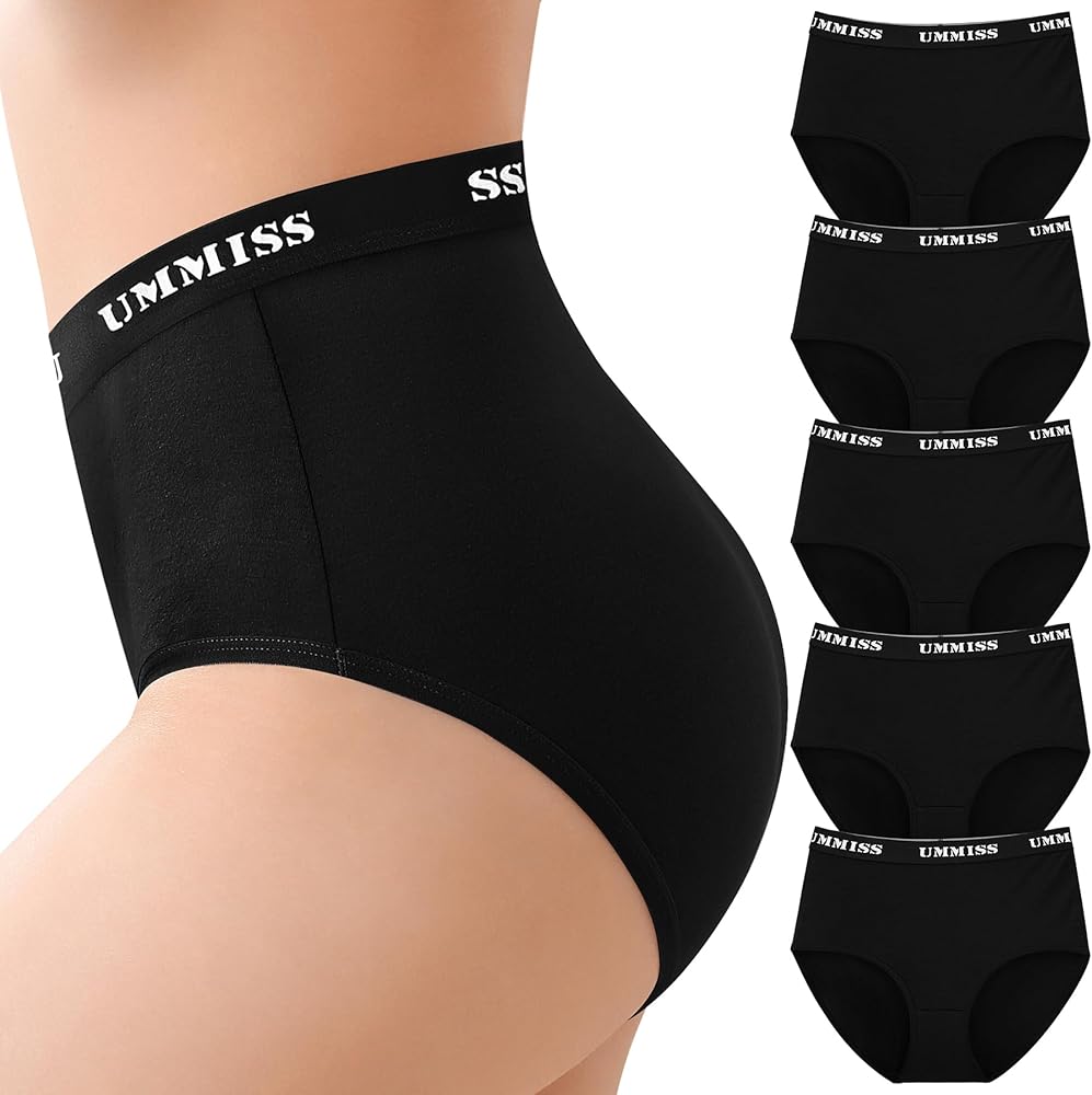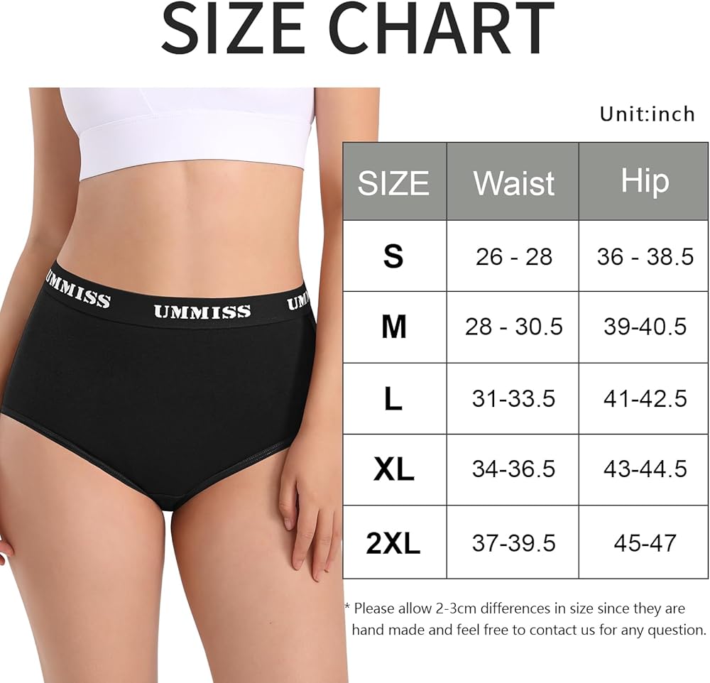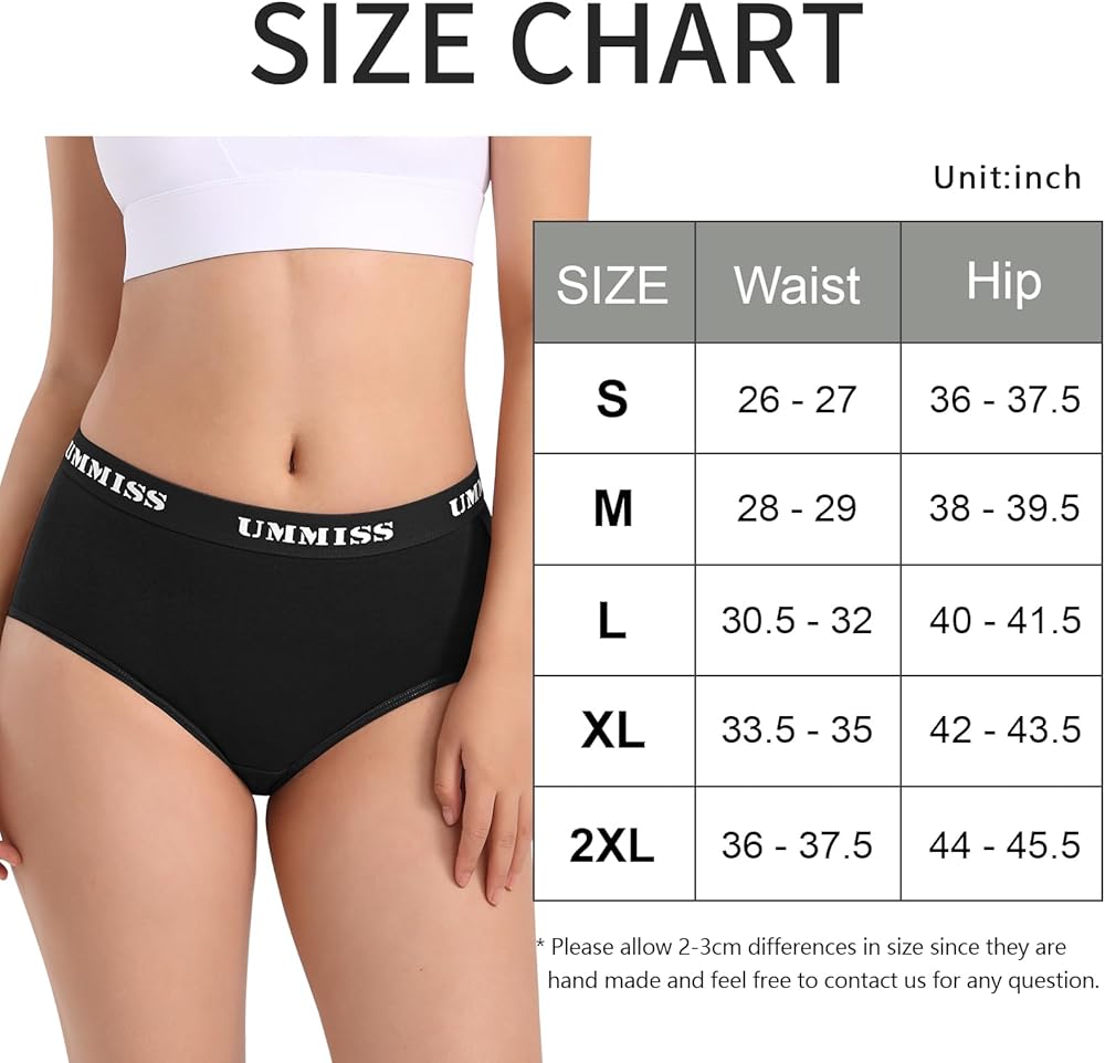 الجسم/نسيج القماش: 95% قطن، 5% سباندكس. مصنوع من القطن الفاخر مع لمسة من التمدد لراحة مرنة، ملابس داخلية نسائية عالية الخصر من UMMISS خفيفة الوزن وجيدة التهوية بشكل طبيعي