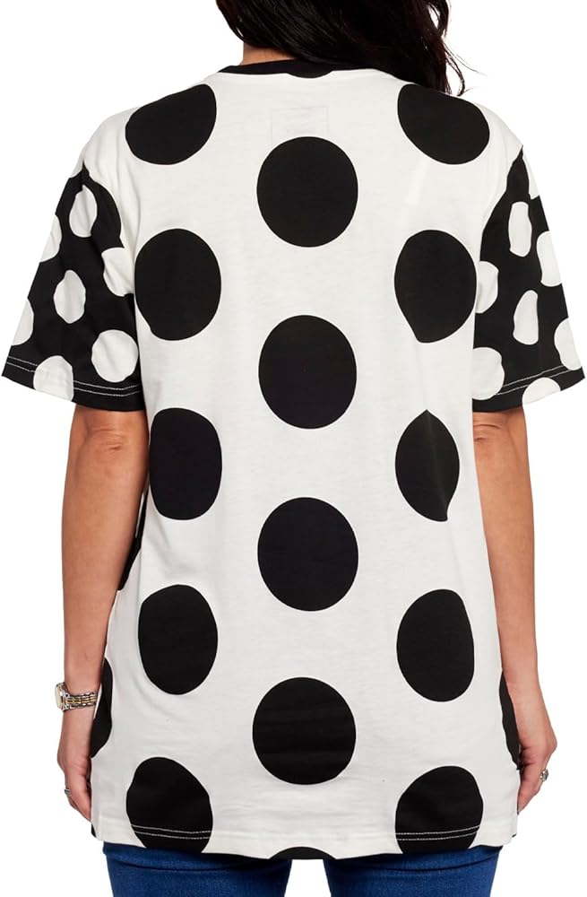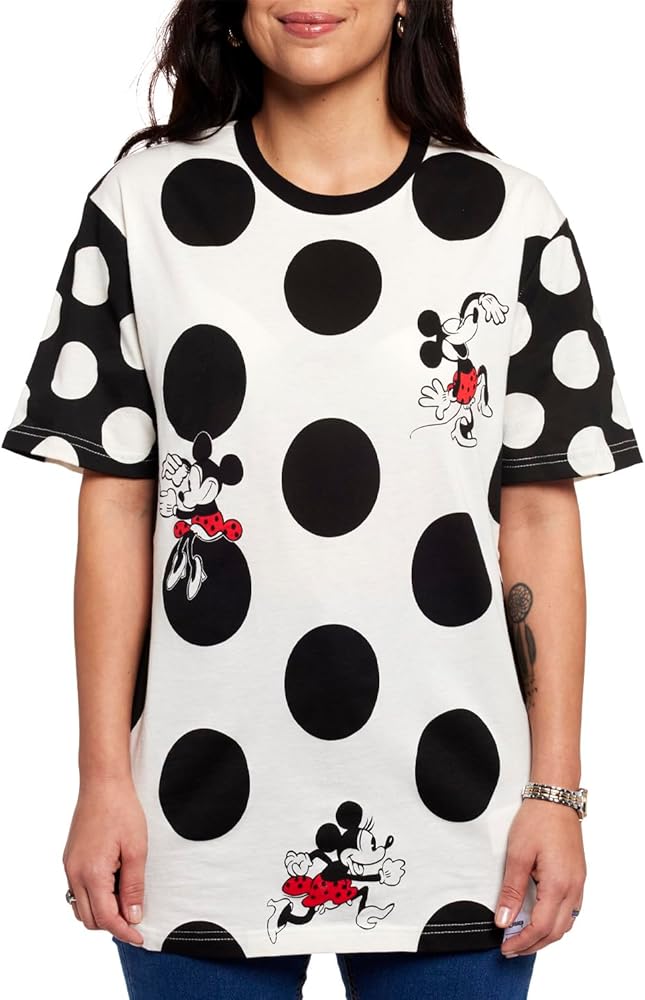 Look dashing in dots! Our Loungefly Disney Minnie Mouse Rocks the Dots Unisex Tee is a fresh and fabulous take on a classic style. This comfy tee features a white background with black dots, and Disney's Minnie Mouse takes center stage. You'll find her in vintage, printed details, freshening up her look, running, dancing, and rocking those dots! The sleeves are color-blocked in black, spotted with white dots for an updated look. Arrive on the dot and in style wherever you go.
