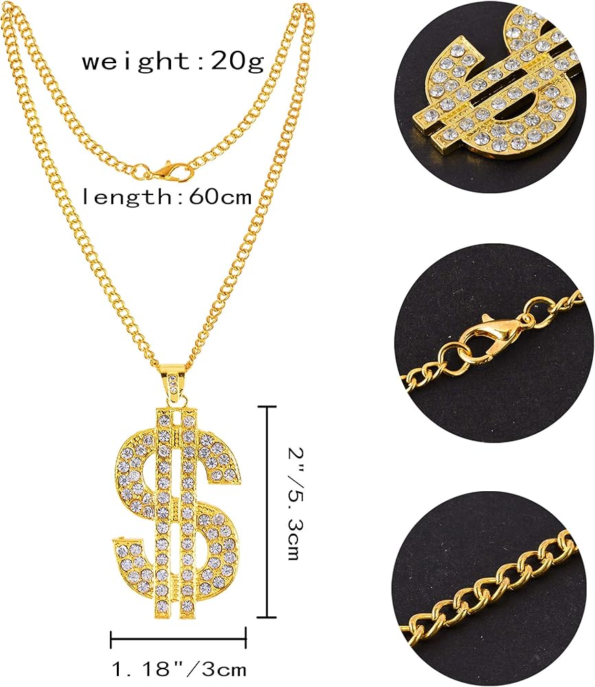 طقم زي هيب هوب 80/90ss من يارومو - 7 عبوات من لوازم الحفلات 80/90 ثانية مع علامة دولار (ذهبي)