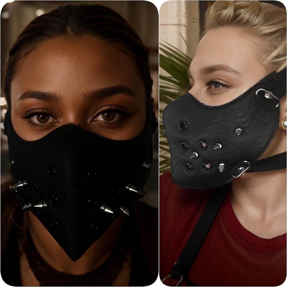 Genda 2Archer PU Leather Fashion Half Face Punk Cosplay Anti-Dust Rivet Mask