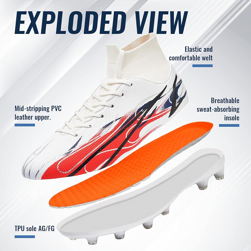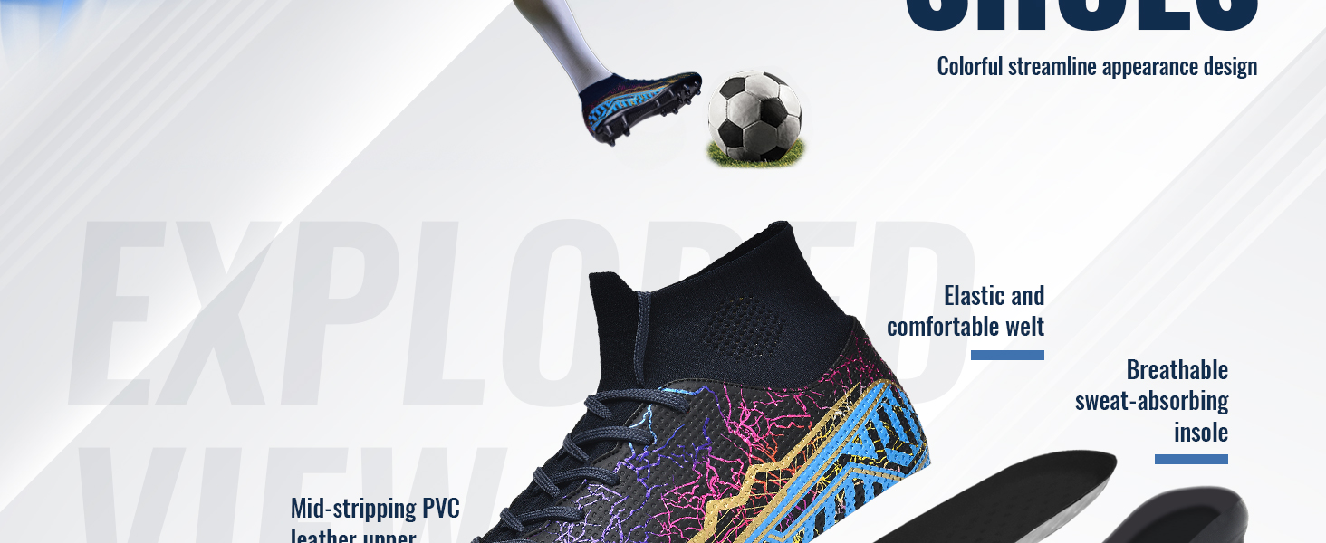 • High-top Design:The soccer sneakers with high-top design provide sufficient support for the ankle and help protect the ankle from injuries during exercise.