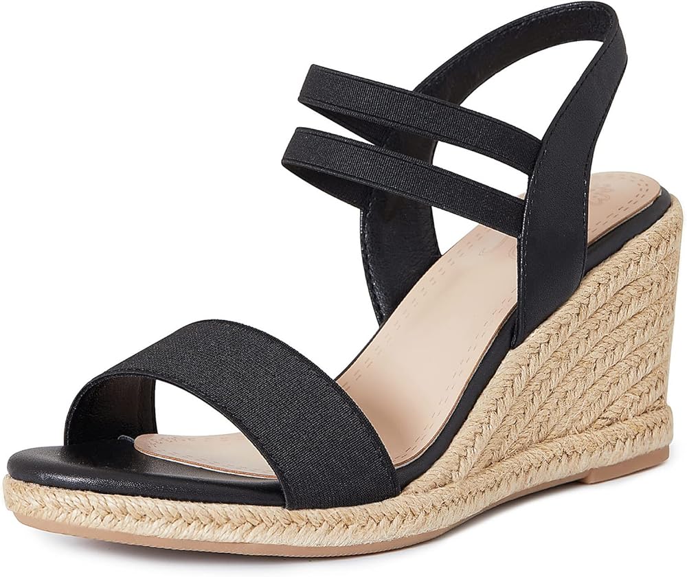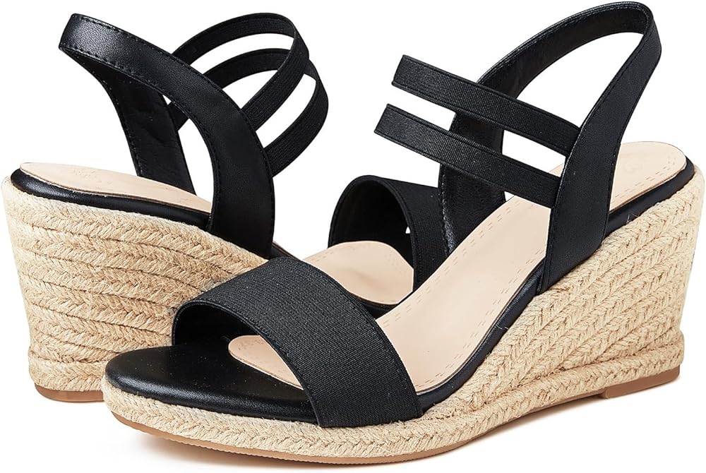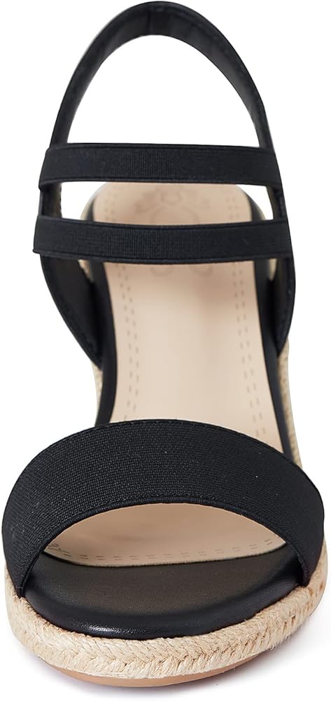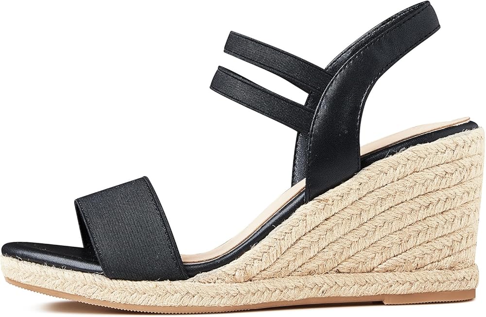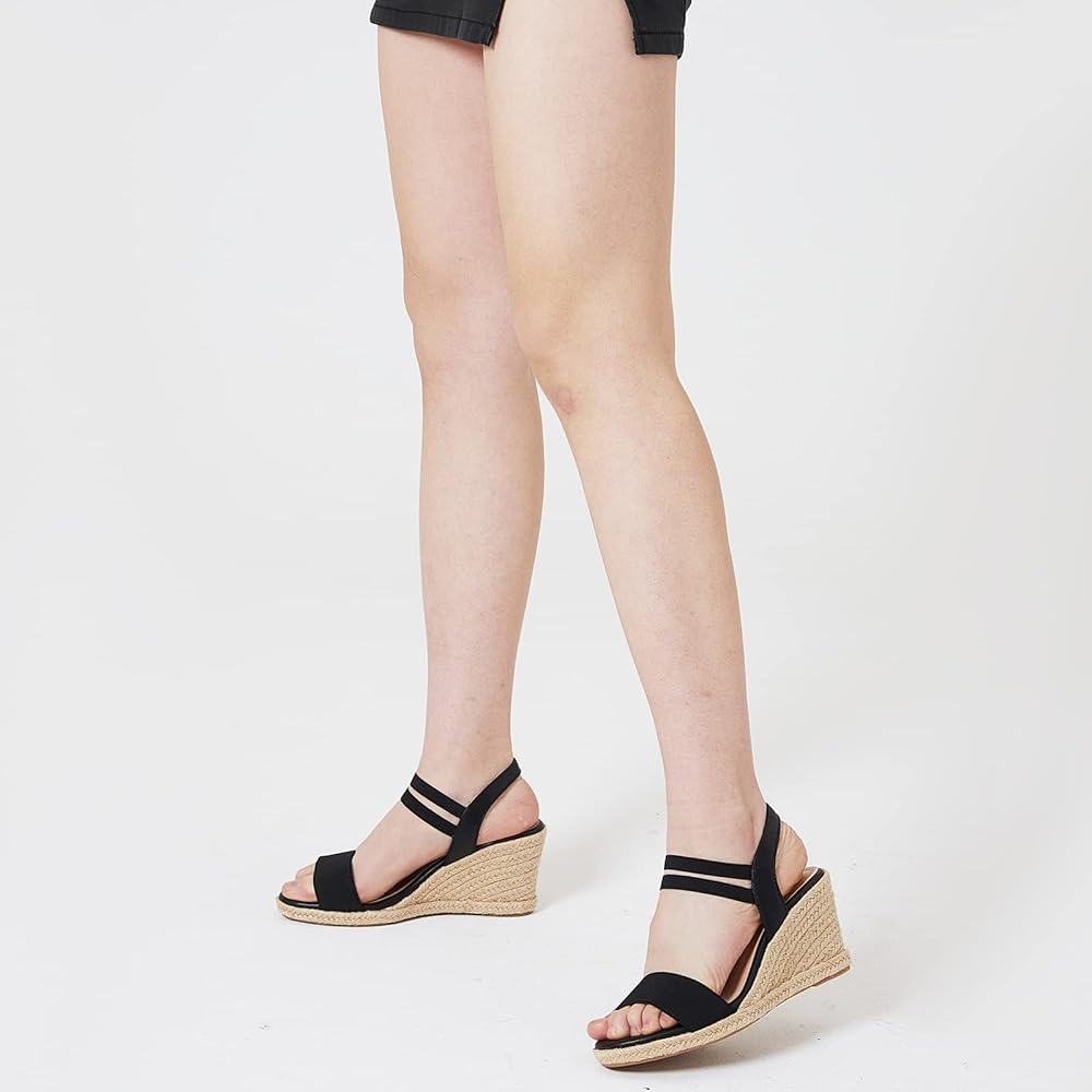 Mikarka صنادل إسبادريل بكعب منخفض للنساء صنادل أرضية مفتوحة من الأمام وأشرطة مرنة للكاحل أنيقة ومريحة سهلة الارتداء