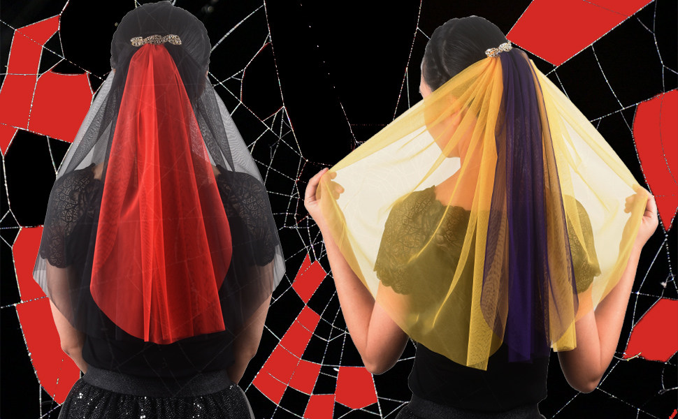التصميم: ثلاث قطع من لونين مختلفين من الوشاح معًا، فريدة جدًا، تجعلك مميزًا في الحفلات، أو الهالوين أو ليلة الكرنفال