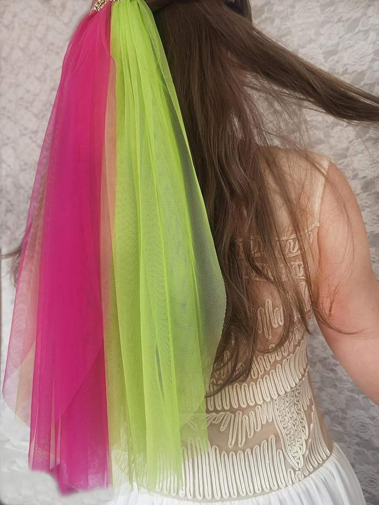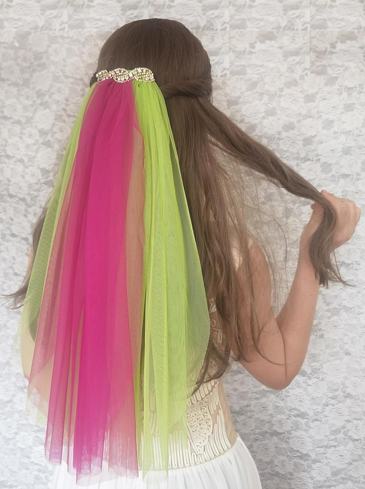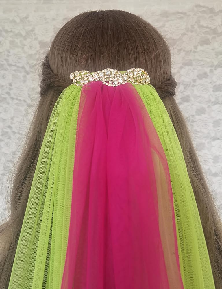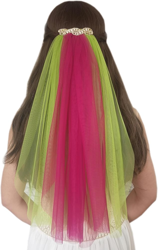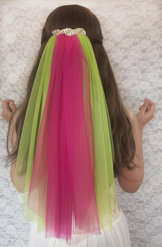 المقاس: الوشاح مصنوع من حجر الراين الذهبي ومادة التول مقاس 10.16 سم. يتكون من ثلاثة حجاب مقاس 20 بوصة بلونين مختلفين.
