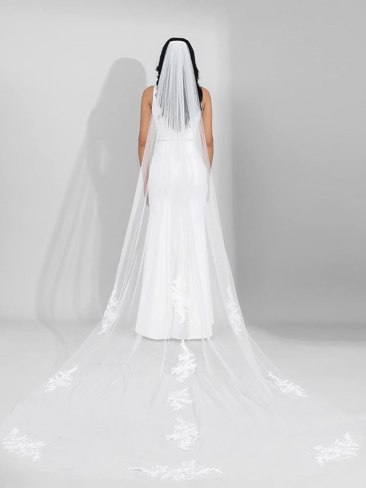 There are different types, including shoulder, waist, fingertip, ballet, waltz, chapel and cathedral length bridal veil. Bride wedding veil has Width with 118” and 57” for choose.