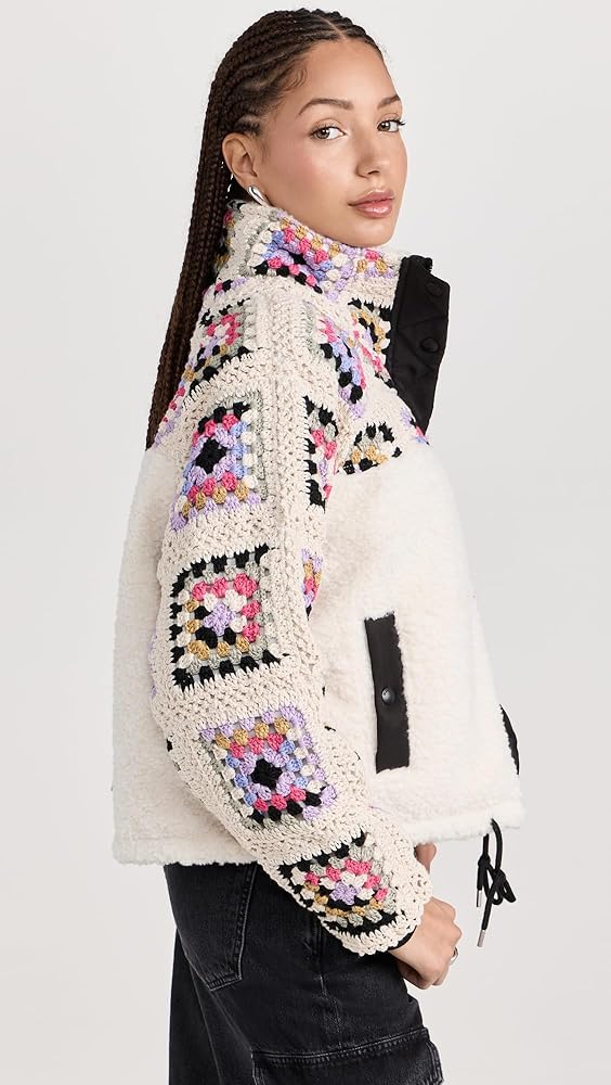 • رباط كروشيه ملون وأكمام طويلة، رباط داخلي عند الحاشية
