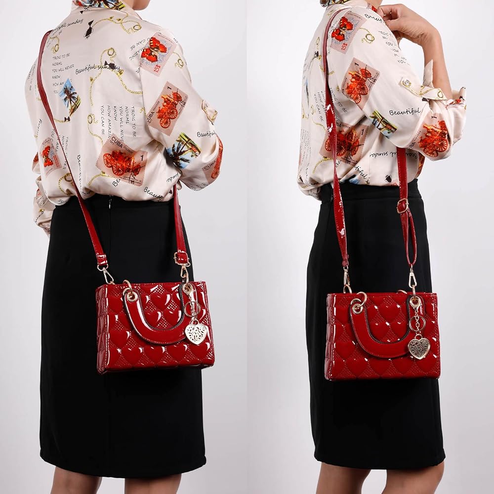 ❤ المميزات: حزام الكتف القابل للفصل والتعديل مريح للغاية لجعله كحقيبة كتف مربعة واحدة أو حقيبة كروس. أو يمكنك ببساطة الإمساك بالمقابض العلوية أو تعليقها على ذراعك كحقيبة يد نسائية على شكل قلب.
