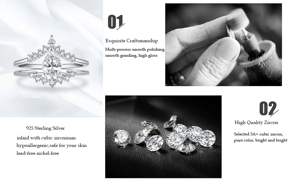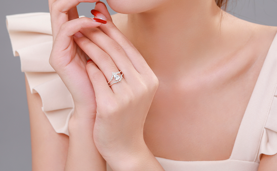 خواتم من الفضة الإسترلينية عيار 925: مجموعة خواتم الزفاف مصنوعة من الفضة الإسترلينية s925. مجموعة خواتم الخطبة الأبدية الرائعة هذه لا تسبب الحساسية بنسبة 100%، وخالية من الرصاص والنيكل. مما يجعلها مثالية لأي شخص لديه بشرة حساسة.