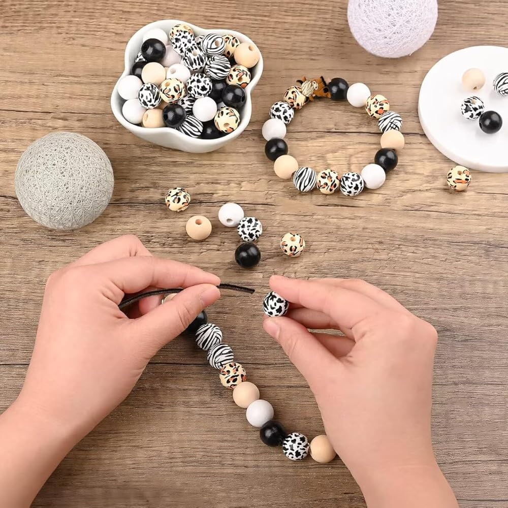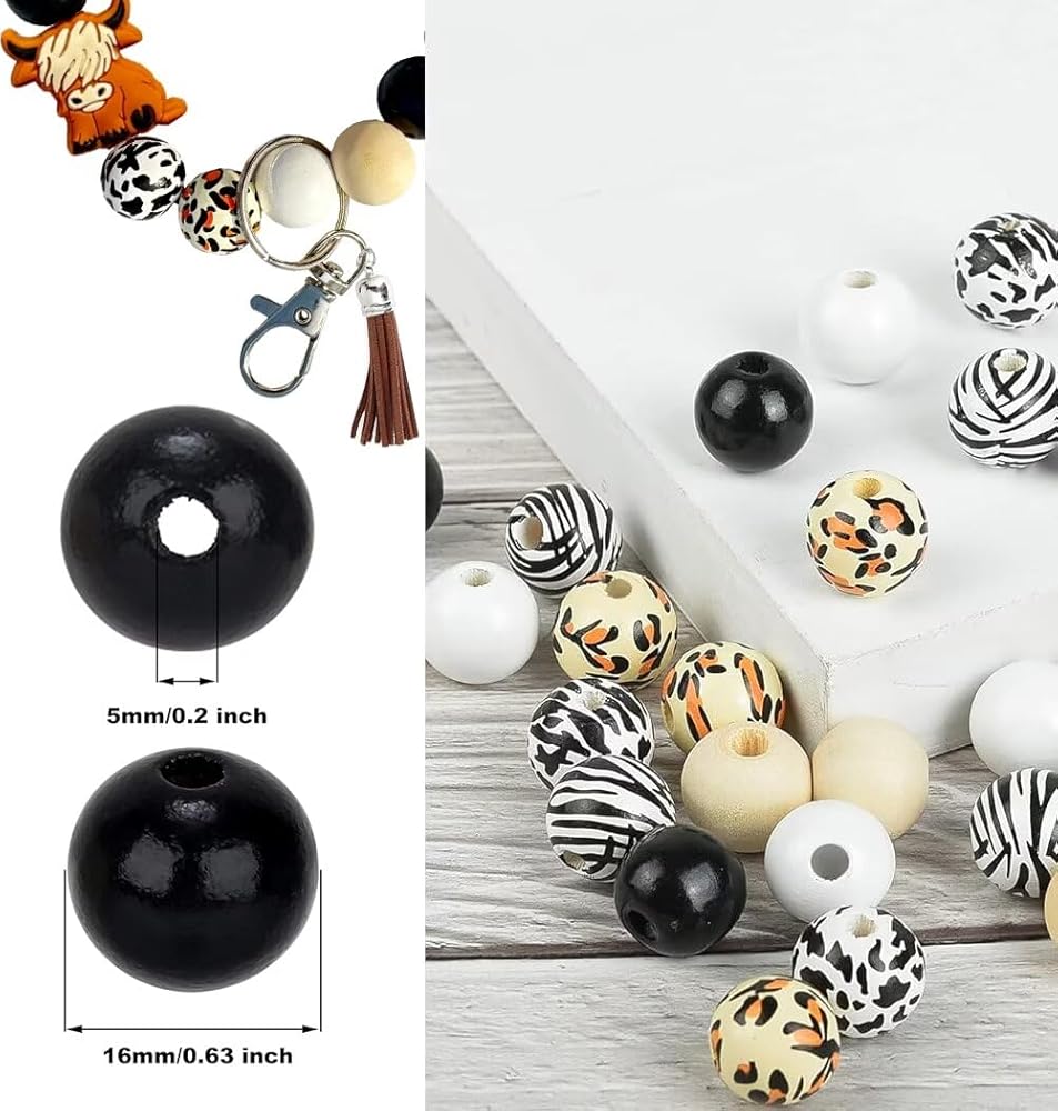 Handwork:The cow print wristlet is made of wood beads, and handmade by elastic nylon thread and leather tassel.
