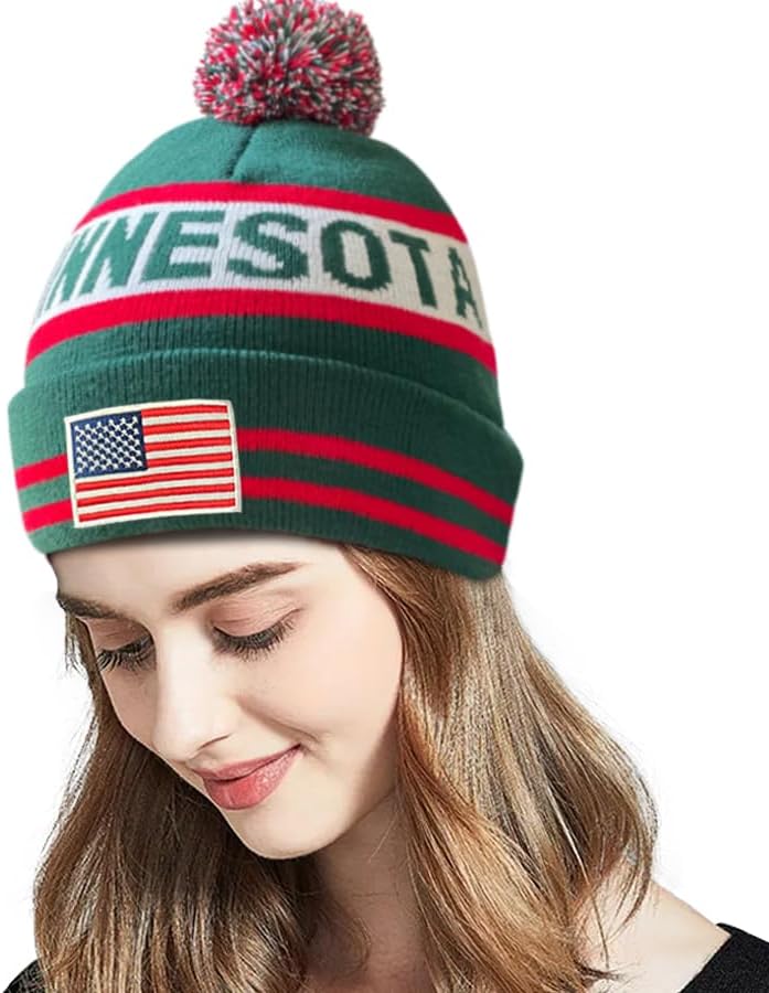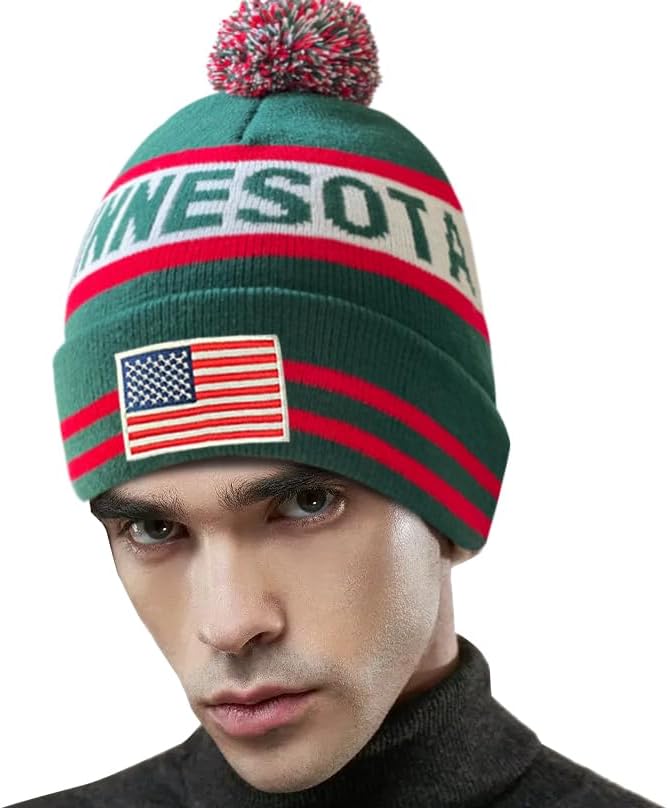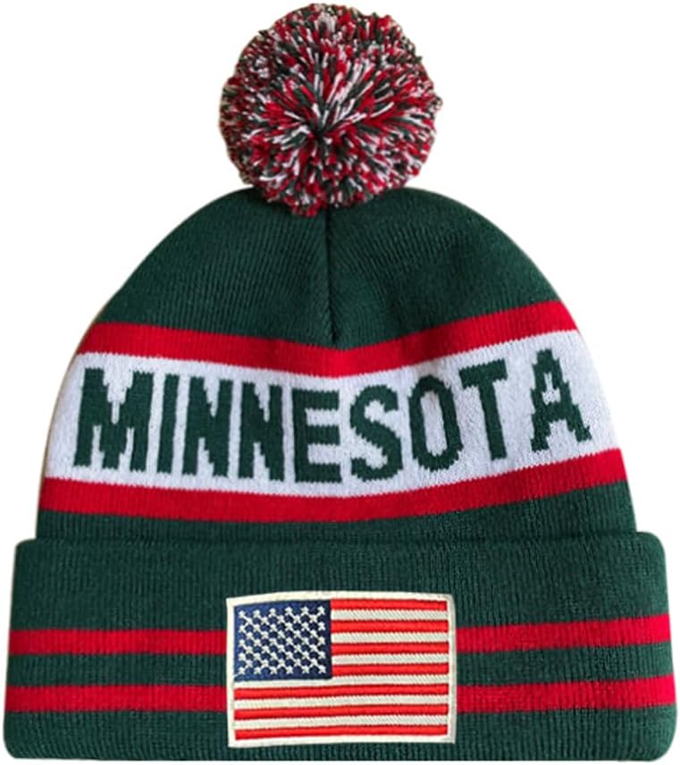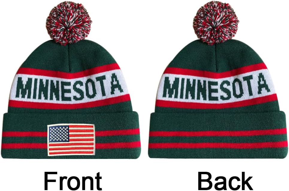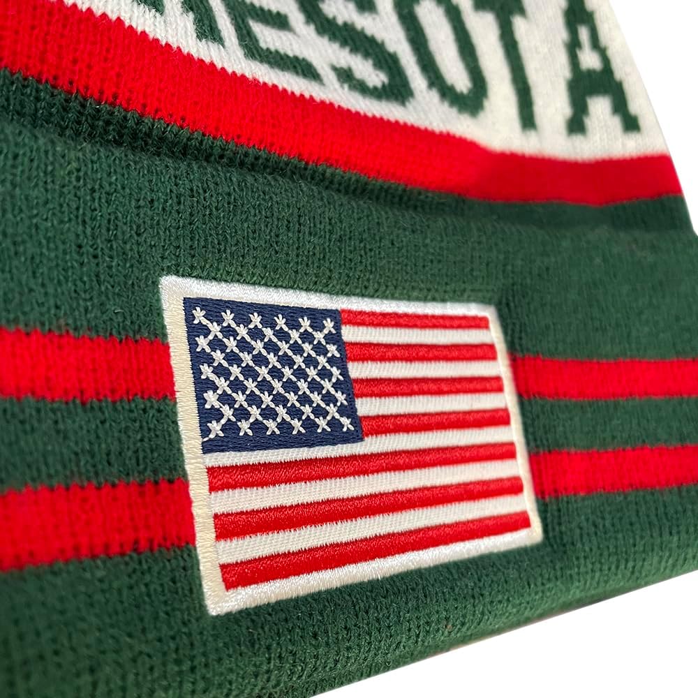 DianYu الولايات المتحدة العلم مينيسوتا سيتي بوم قبعة قسط المطرزة التصحيح الشتاء لينة مينيسوتا قبعة متماسكة بوم قبعة قبعة خضراء