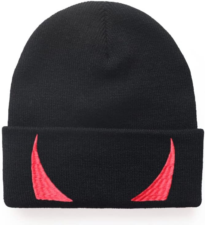 DianYu المطرزة الشيطان القرن الشتاء قبعة الشتاء الناعمة قبعة متماسكة قبعة سوداء