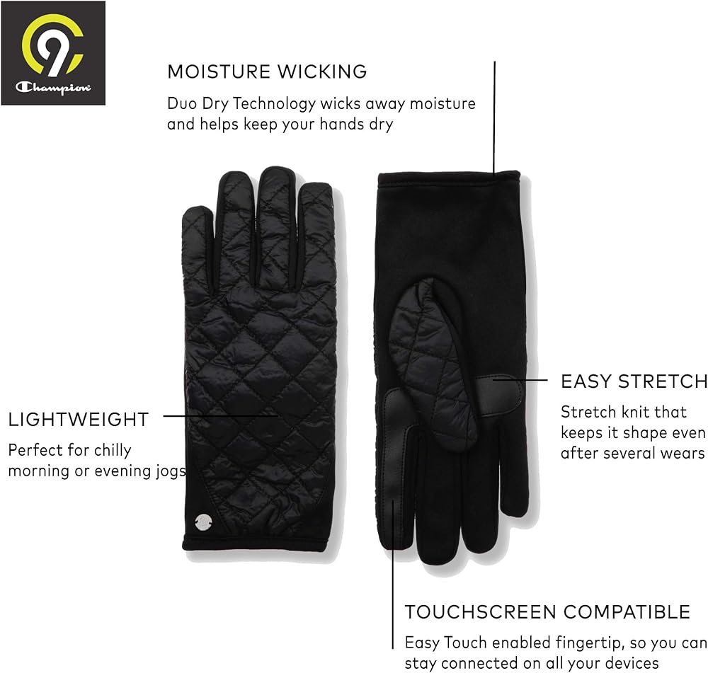 C9 Champion Women's Lightweight Black Quilted Glove, Touch Screen Friendly