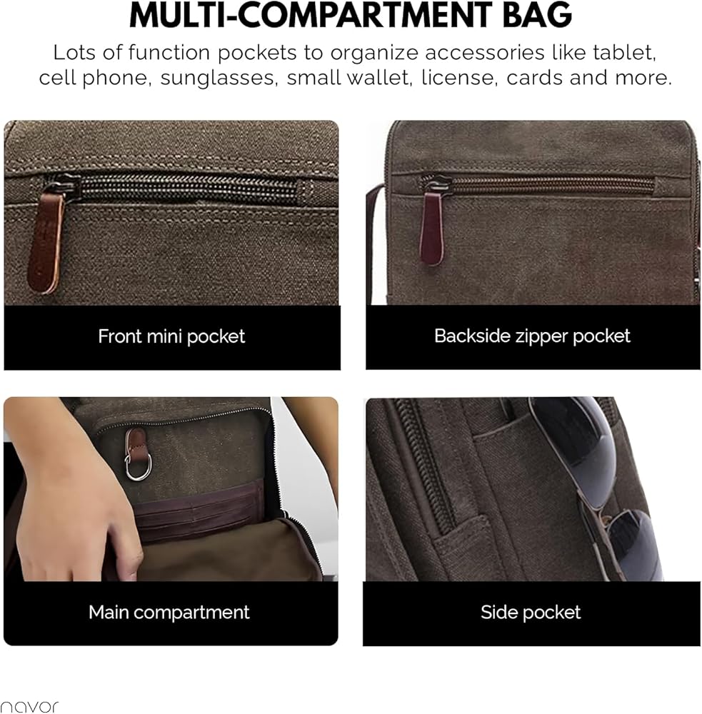 الكثير من الجيوب الوظيفية، يمكنك تنظيم الملحقات الخاصة بك مثل iPad، والهاتف الخلوي، وبنوك الطاقة، والنظارات الشمسية، والمفاتيح (يتضمن حامل حلقة المفاتيح المعدنية)، والمحفظة الصغيرة، والترخيص، والبطاقات وغيرها الكثير. يمكن الوصول إلى الملحقات الخاصة بك بسهولة عند الحاجة.