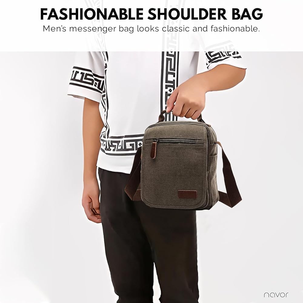 حقيبة المراسلين الرجالية متينة وتبدو كلاسيكية وعصرية. تصميم محمول مريح ومريح. الحجم التقريبي لهذه الحقيبة هو: (الطول × العرض × الارتفاع) 8.6 × 4.72 × 11 بوصة (22 × 12 × 28 سم)، الوزن: 1.3 رطل / 0.58 كجم.