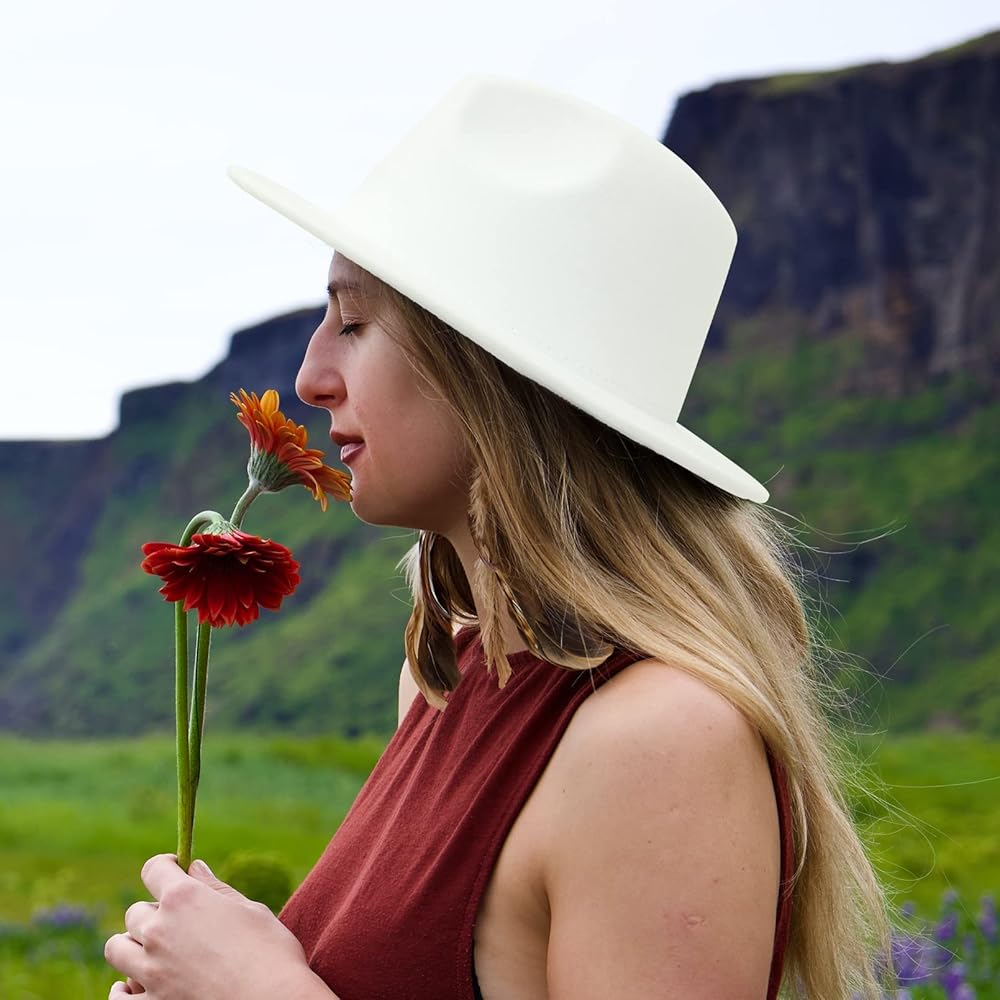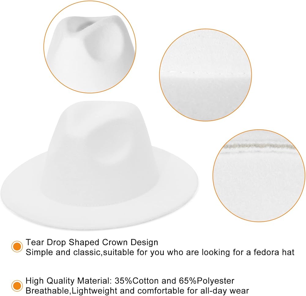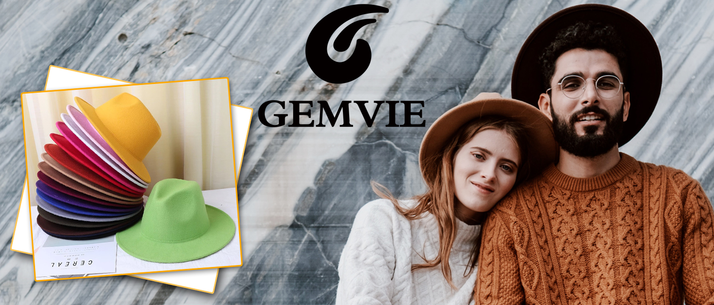 GEMVIE رجل إمرأة صوف فيدورا بنما قبعات واسعة حافة مسطحة تريلبي قبعة لباد حفلة شهم قبعة