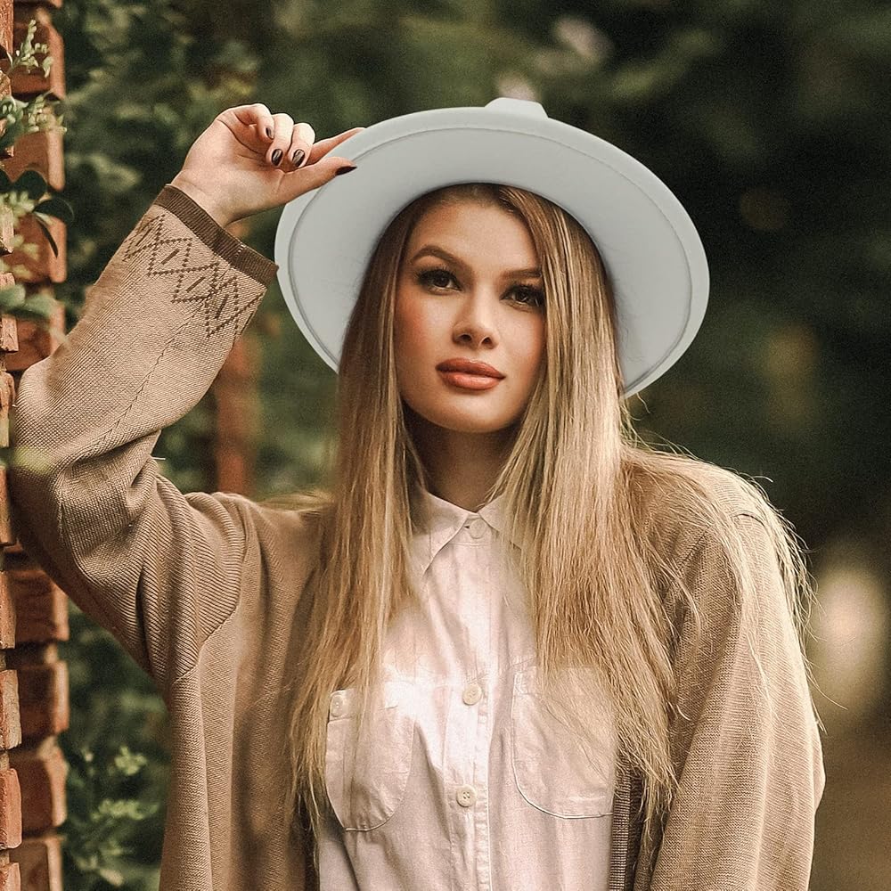 ✵قبعة صوف فيدورا كلاسيكية وعصرية، حافة واسعة وتصميم أنيق ذو ألوان ثابتة، إكسسوار رائع لمطابقة الأزياء وأيضًا قبعة جميلة لخزانة ملابسك.