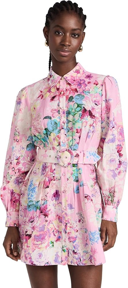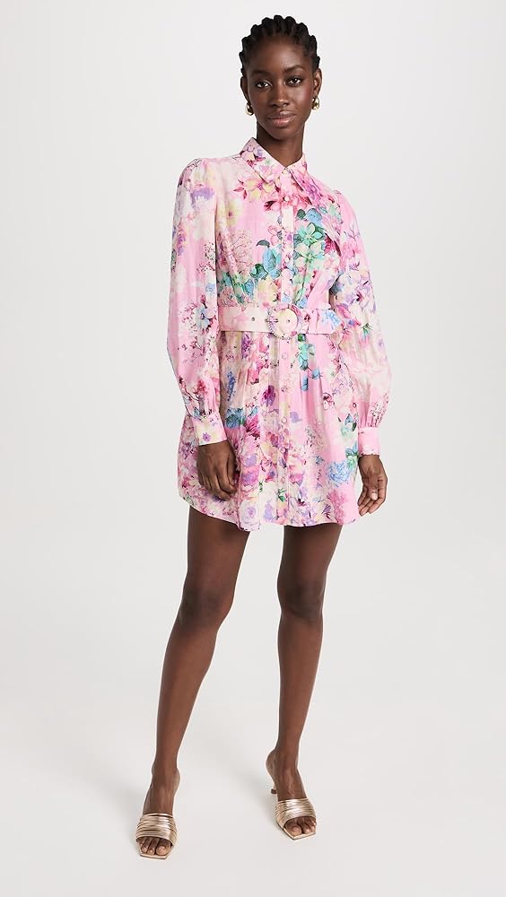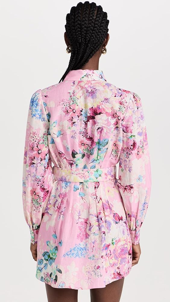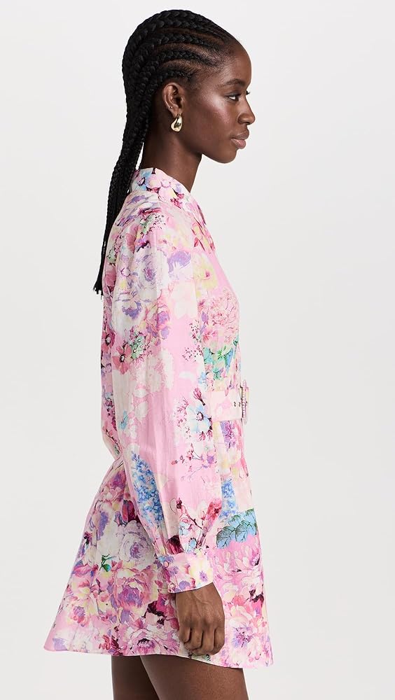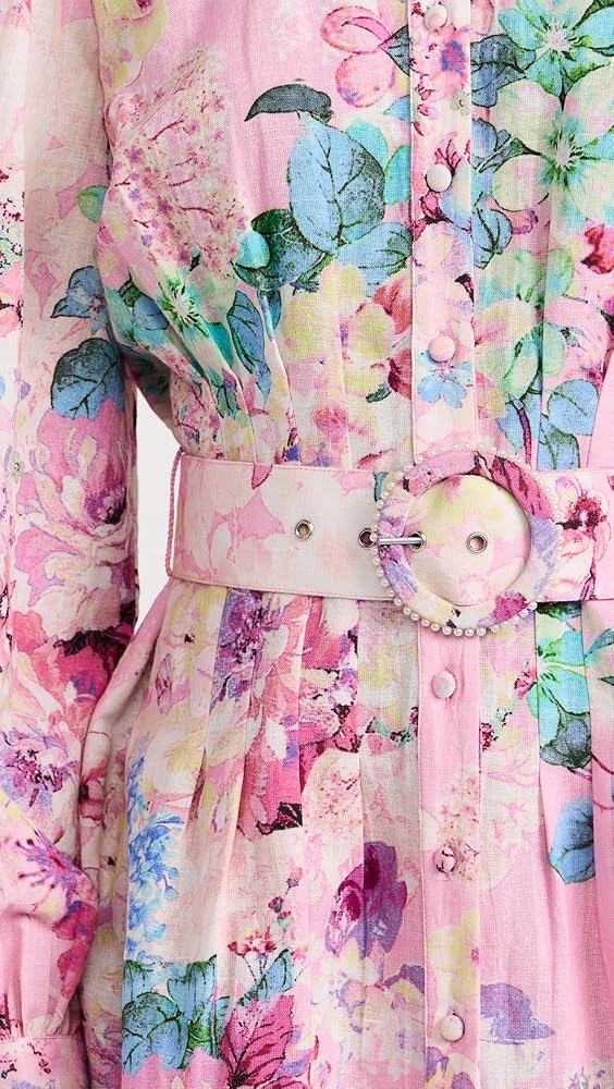 • طباعة زهور، رقبة على شكل طوق وفتحة أزرار، حزام اختياري قابل للتعديل مع لمسات من اللؤلؤ المقلد، طيات على كامل التصميم