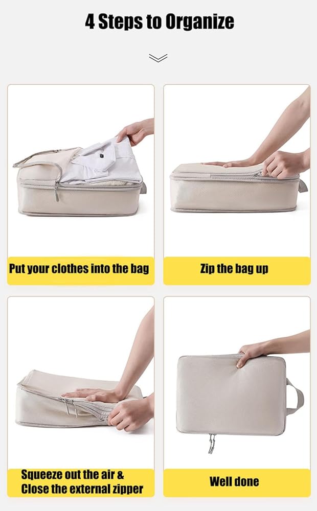 • Space Saving: Compress by hand without an air pump; Save up to 60% space in your luggage