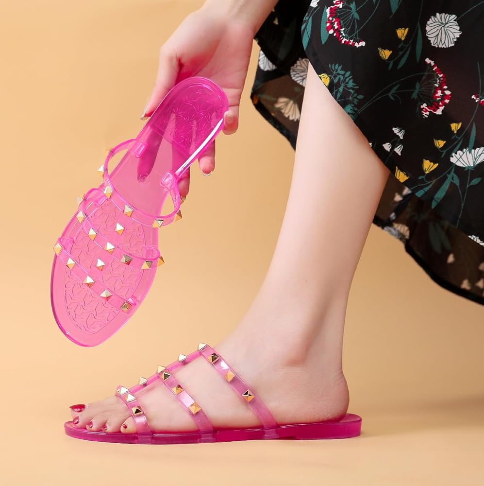 Great Classic Studded Strappy Design - These jelly sandals are designed to add a touch of glamour to any outfit, whether you want for a casual looking. The studded flat sandals for women add a glamorous touch to your beauty and make these sandals perfect for special occasions. These flat jelly sandals are not only stylish but also comfortable to wear!