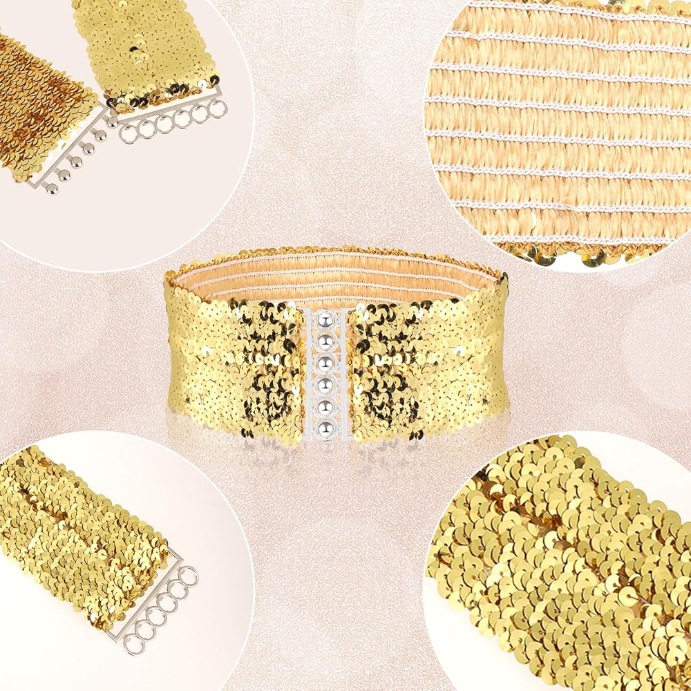 HIGH-QUALITY MATERIAL: Our glitter belt is made of high-quality sequin and elastic bands. It is bright and shiny and will not fall off easily. It has good elasticity and will not easily deform and break. You can use it for a long time with confidence.