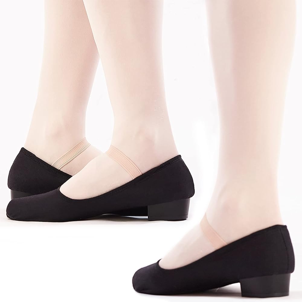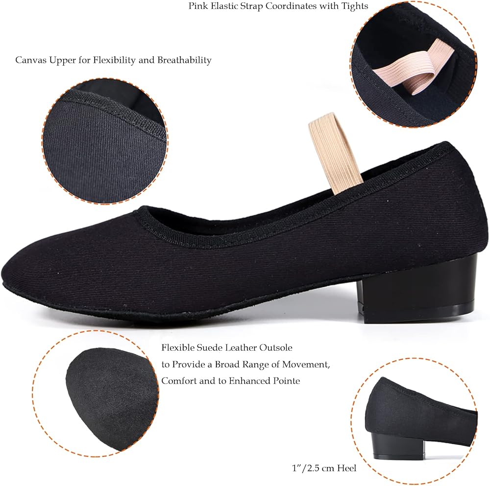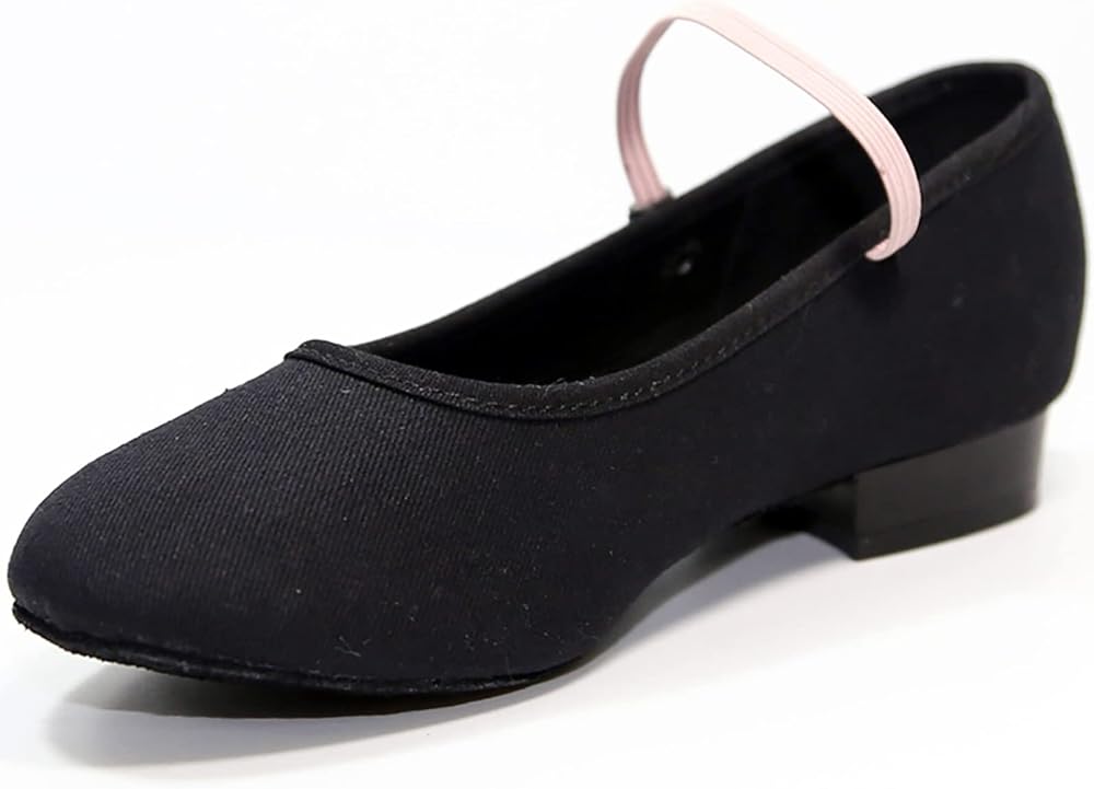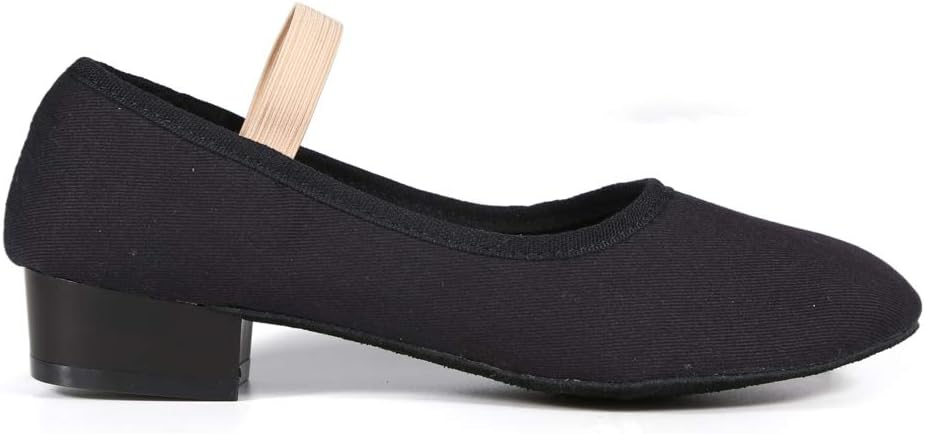 حذاء رقص DANCEYOU باللون الأسود من القماش مع حزام مطاطي للنساء والأطفال الصغار