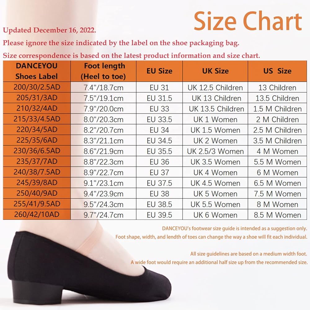 • ❤️نصائح المقاس: تختلف أحذية الرقص عن الأحذية الرياضية العادية. يرجى قياس طول وعرض قدميك قبل تقديم طلب جديد، ثم تفضل جدول المقاسات الخاص بنا للشراء. إذا كانت قدميك أوسع، فيرجى اختيار مقاس أكبر.