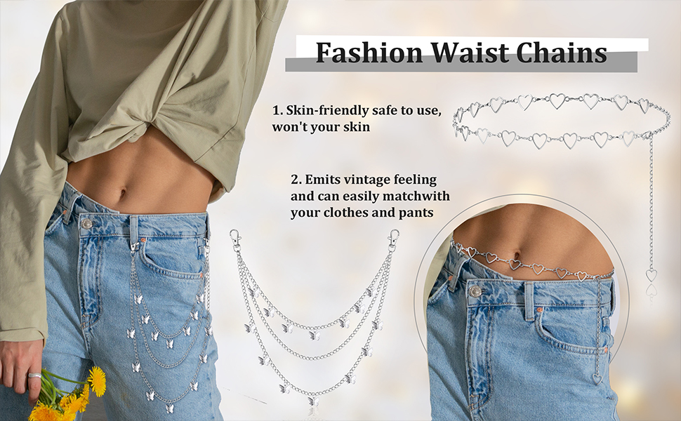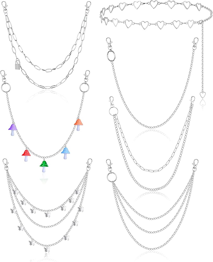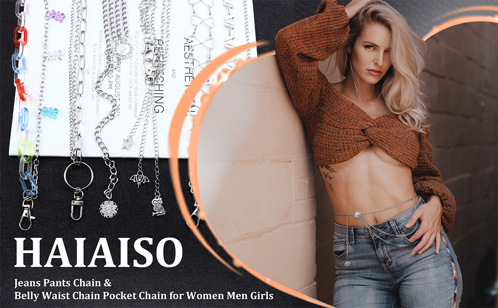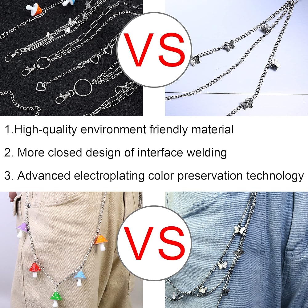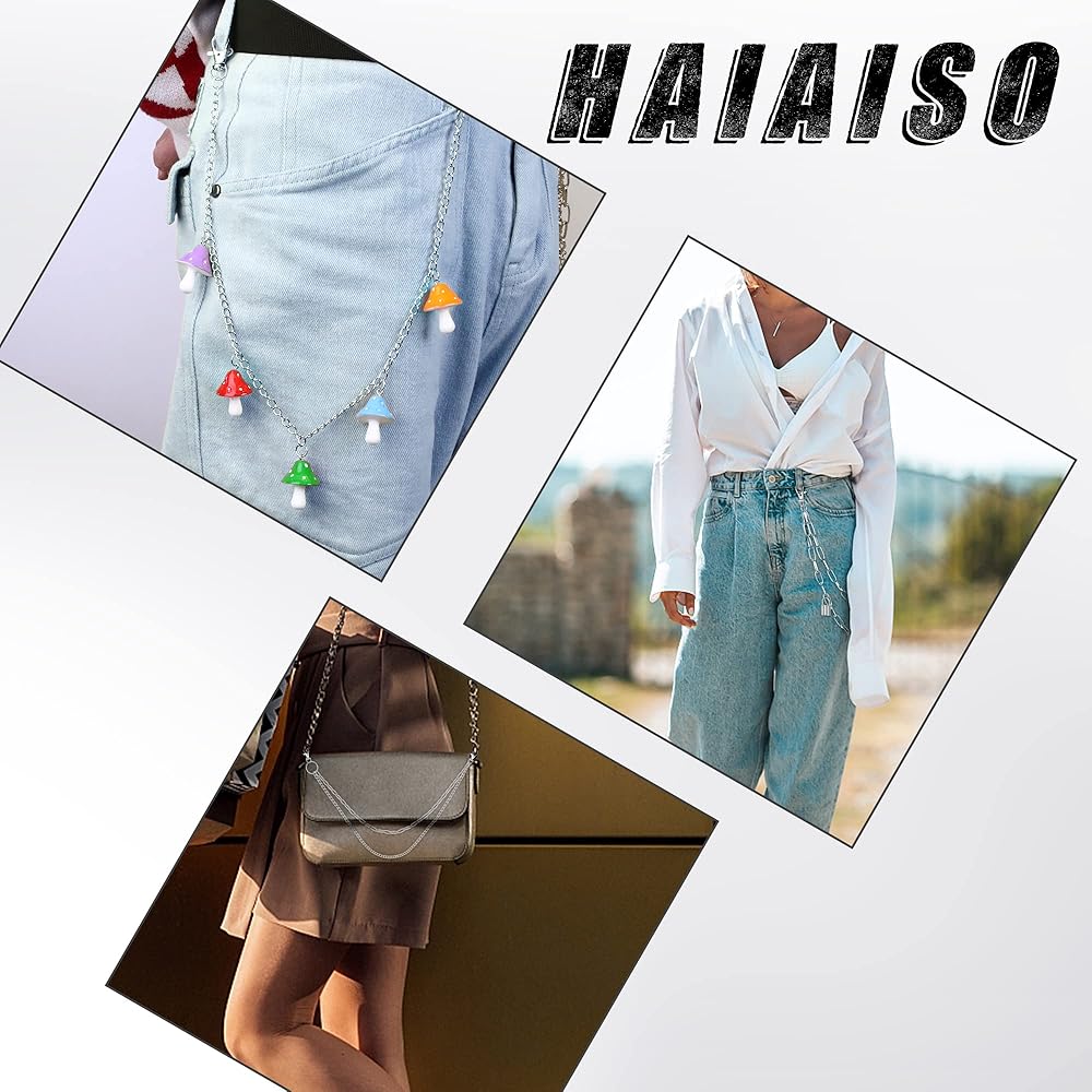 HAIAISO سلسلة حزام الجينز السراويل سلسلة جيب الخصر سلسلة متعددة الطبقات فراشة قفل سحر الملونة المحفظة سلسلة الهيب هوب السراويل سلسلة للرجال النساء 7-9 قطع