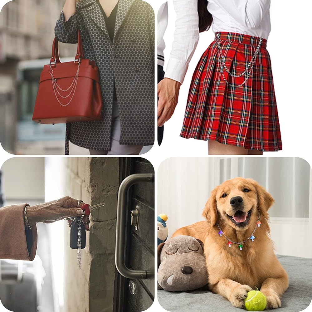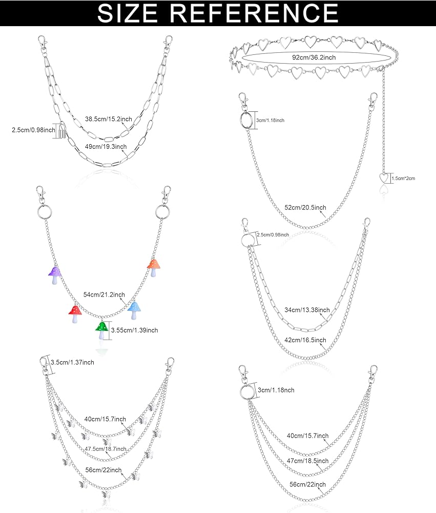 🍹PUNK PANTS CHAIN🍹 تأتي العبوة مع 6 قطع من سلاسل البنطلونات وسلسلة خصر للبطن بأطوال مختلفة. مثالي للاستخدام على المحفظة والسراويل والجينز والتنورة والأحزمة وسلسلة المفاتيح للنساء والرجال. كمية كافية تلبي احتياجاتك اليومية من الملابس.