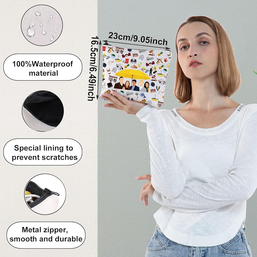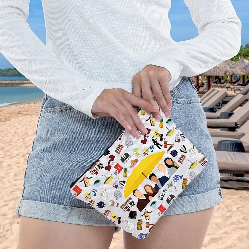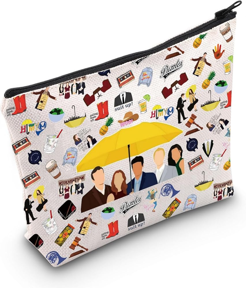 WZMPA How I Met Your Mom حقيبة مستحضرات التجميل Ted Mosby & Robin Sparkles Fans Gift Barney Stinson شخصية مكياج بسحاب حقيبة حقيبة صفراء مظلة زرقاء فرنسية القرن Merch (بدلة)