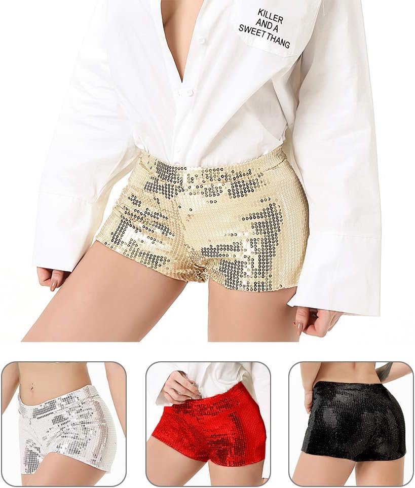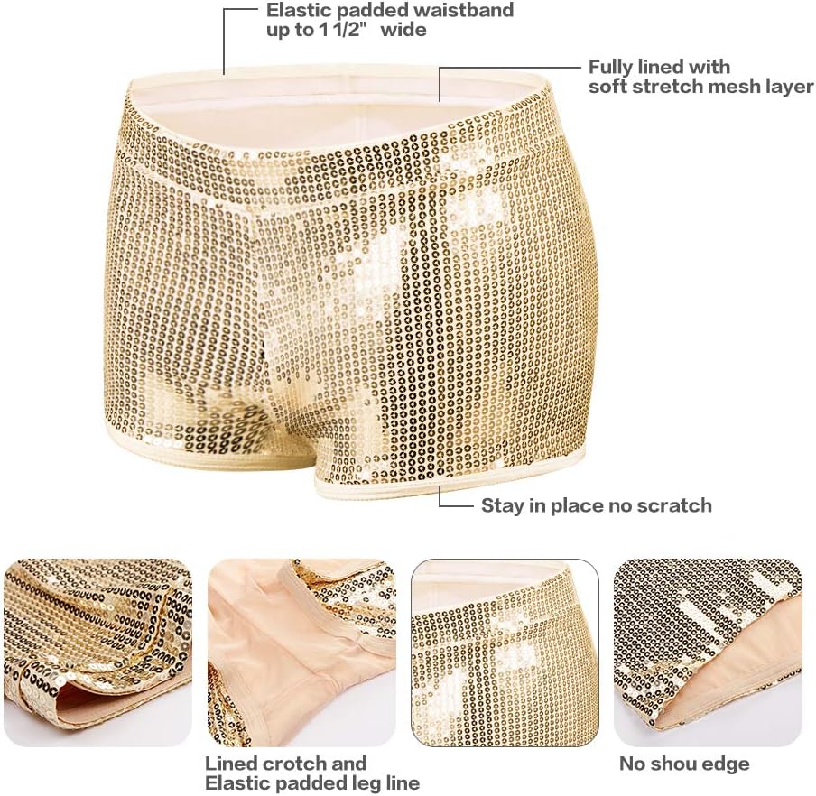 ► شورت مثير بالترتر مناسب لحفلات الزفاف، والحفلات، والنوادي، والرقص، والعروض، وما إلى ذلك. مقاس قابل للتمدد للحصول على أقصى قدر من الراحة | إضافة رائعة للنادي أو ملابس الهذيان
