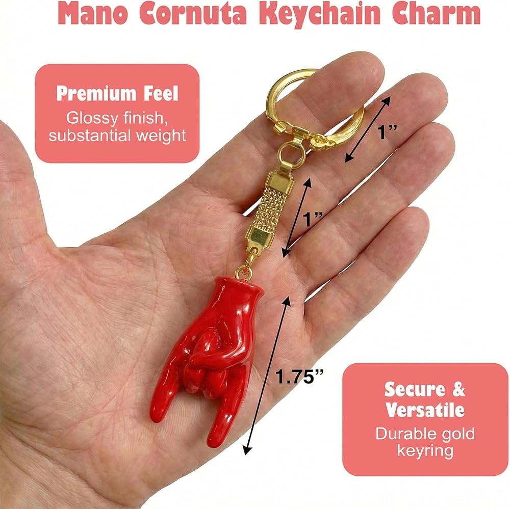 - ✅ حلية مالوتشيو بلاستيكية حمراء مقاس 1.75 سم - سلسلة شريط ذهبي مقاس 1 بوصة وحلقة مفاتيح ذهبية مرفقة مقاس 1 بوصة.