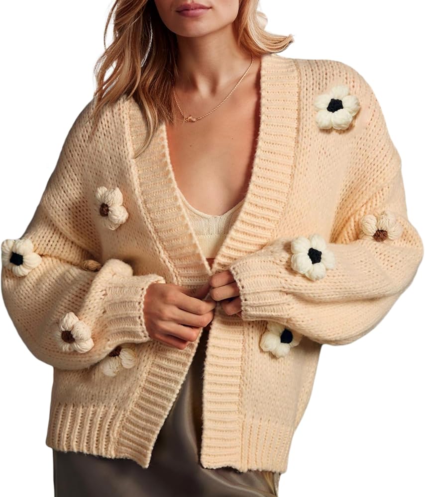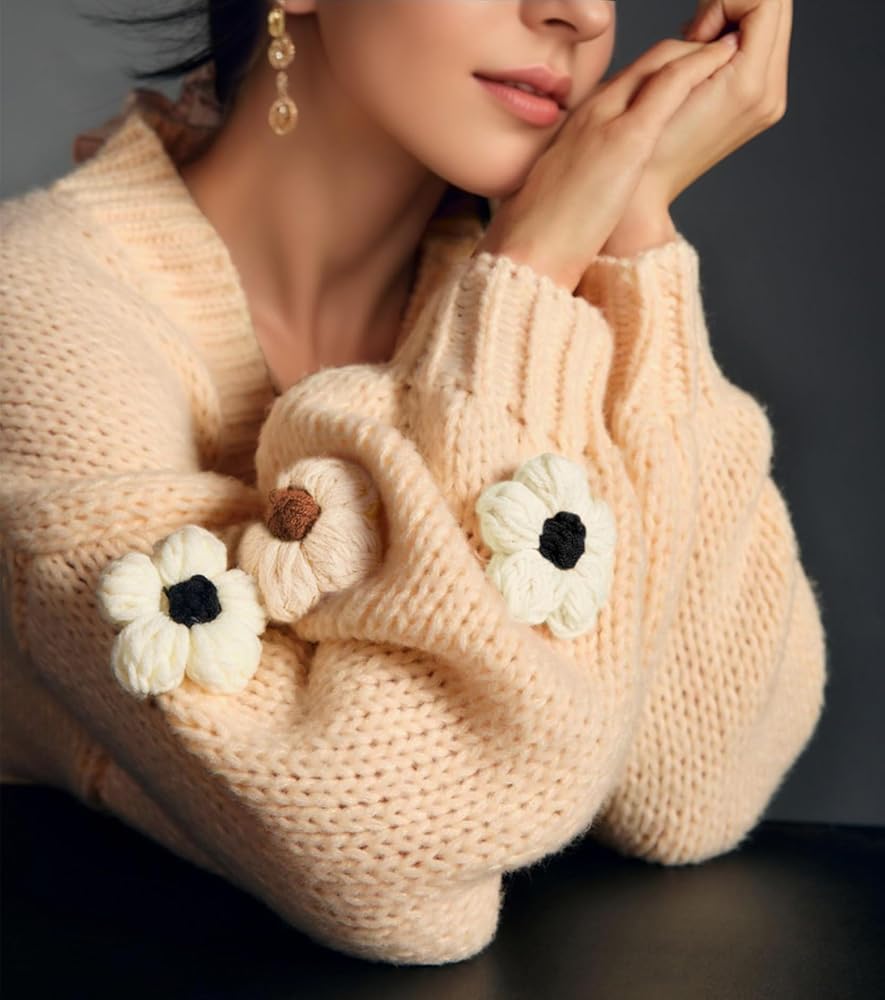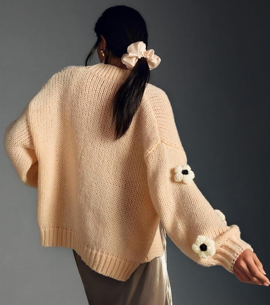 سترة صوفية متماسكة على شكل زهرة معاطف نسائية فضفاضة بأكمام طويلة ومفتوحة من الأمام