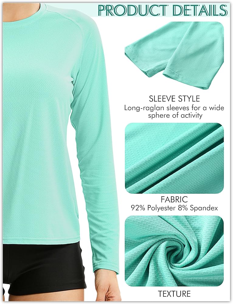 الحماية من الشمس: يتميز هذا القميص طويل الأكمام بحماية من الشمس لإبقاء بشرتك بعيدًا عن الأشعة فوق البنفسجية القوية أو تسمير البشرة أثناء ممارسة التمارين، مما سيبقيك منتعشًا ومرتاحًا في الطقس الحار.