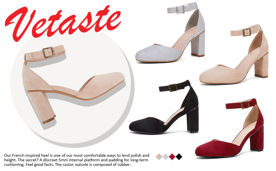 المزايا: مقدمة مدببة، حزام للكاحل، كعب عالٍ، جلد سويدي، حزام صدفي، كعب مثير