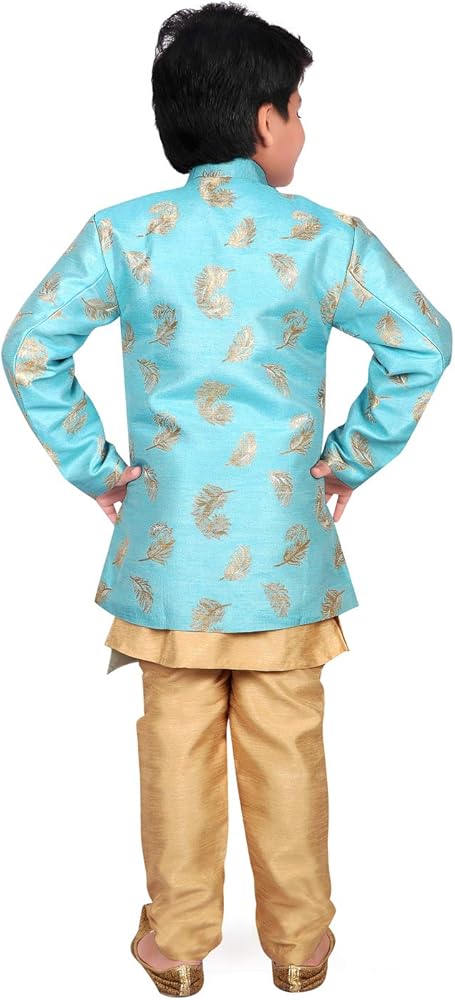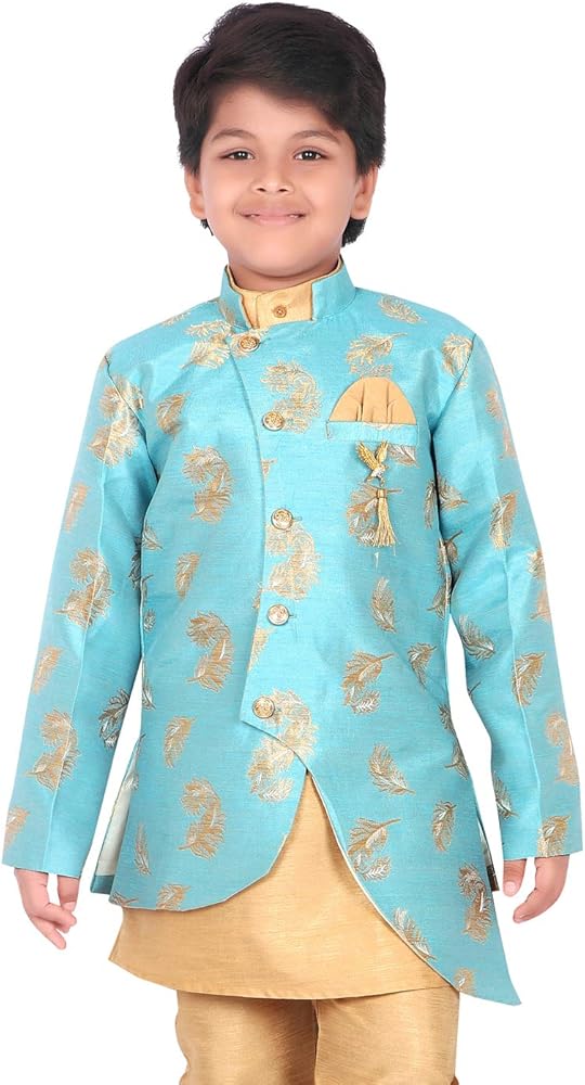 مجموعة مصممي الملابس المصنوعة يدويًا خصيصًا للأطفال الأولاد، هذه الملابس العرقية مريحة جدًا في الارتداء وصديقة للبشرة أيضًا. سوف يمنح نجم الروك الخاص بك مظهرًا عرقيًا رائعًا. تم تصميم المجموعة بعناية للحفاظ على راحة أطفالك الصغار. لذا، احصل على هذه المجموعة العرقية ذات الإصدار المحدود واجعل طفلك الصغير مركز جذب هذا الموسم الاحتفالي.