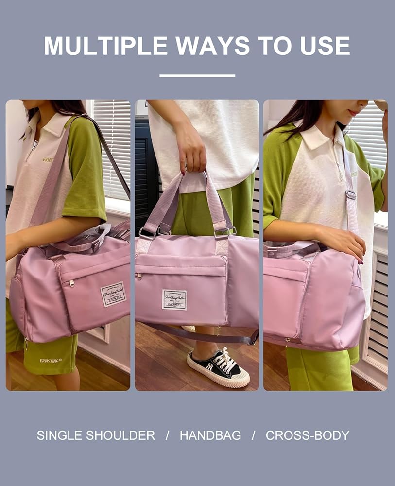 🛍︎(فصل جاف ورطب) تعتبر حقيبة الصالة الرياضية هذه مراعية جدًا للحصول على جيب منفصل بالداخل مع سحاب للإغلاق لتخزين ملابسك المبللة بعد التمرين أو ملابس السباحة. يمكنك أيضًا وضع المناشف المبللة أو فرشاة الأسنان بالداخل لإبقائها بعيدًا عن الاختلاط بملابسك الجافة أو غيرها من الأغراض.