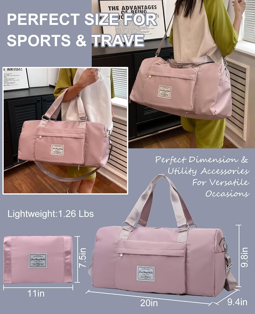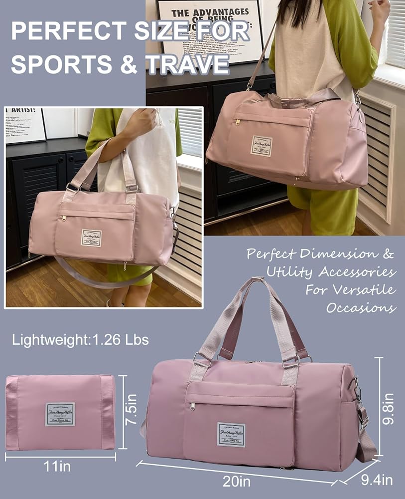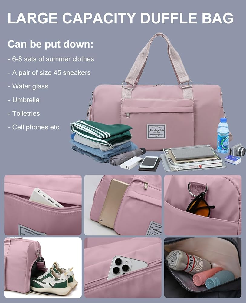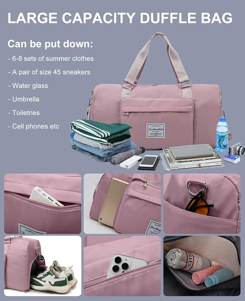 🛍︎【مساحة منفصلة للأحذية】تم تصميم هذه الحقيبة الليلية مع حجرة منفصلة للأحذية لفصل حذائك أو أحذيتك المتسخة عن التروس الأخرى في حالة احتمال تلطيخ العناصر الأخرى. تقريبًا جميع الأحذية المخصصة للنساء والرجال ستكون مناسبة. (مقاس أقل من الولايات المتحدة 11 للرجال)