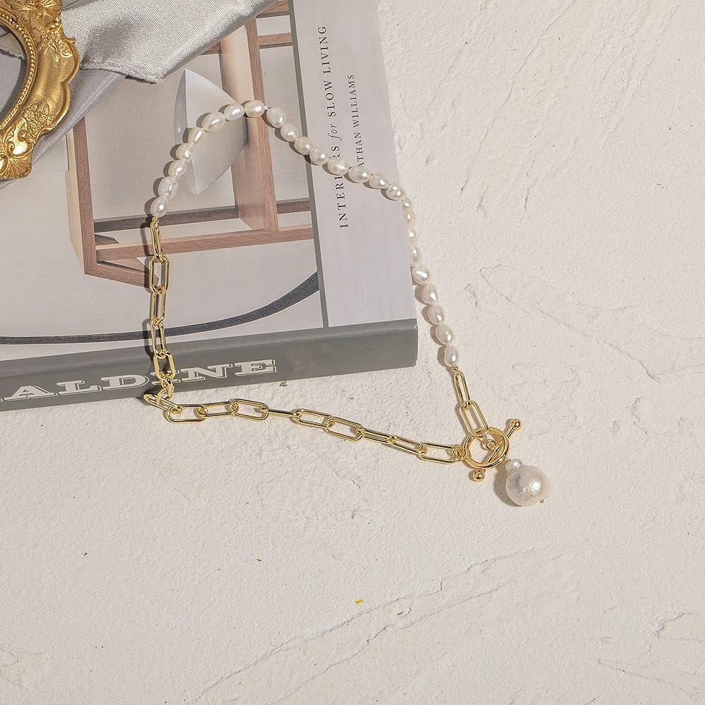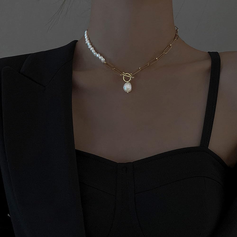 ❤تصميم فريد —— سلسلة مشبك ورق بخياطة لؤلؤ غير منتظمة، عصرية وكلاسيكية. استخدم لؤلؤ الباروك الفريد لتلبية اتجاه العصر الجديد من الموضة. قلادات اللؤلؤ غير المنتظمة تجعل رقبتك فريدة من نوعها، ومجموعة متنوعة من طرق المطابقة والارتداء تظهر سحرك في وضع عصري. تصميم مختلف، أنيق وعصري بنمط الشارع.