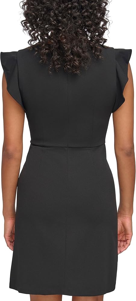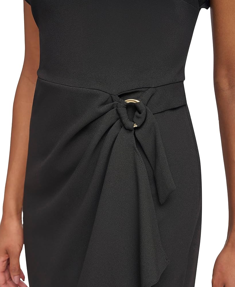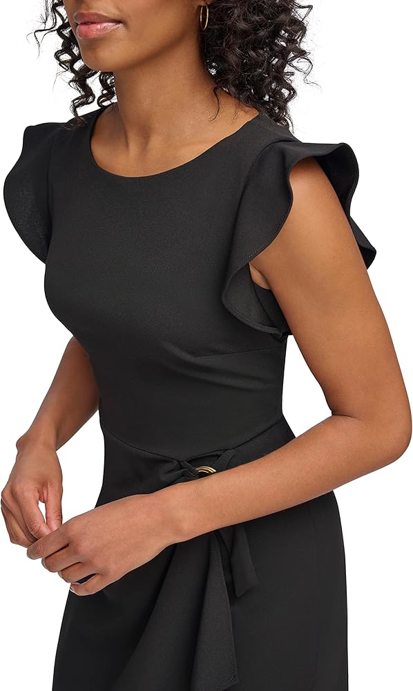 This DKNY Women's DRESS is a Flutter Sleeve Faux Wrap with Hardware
