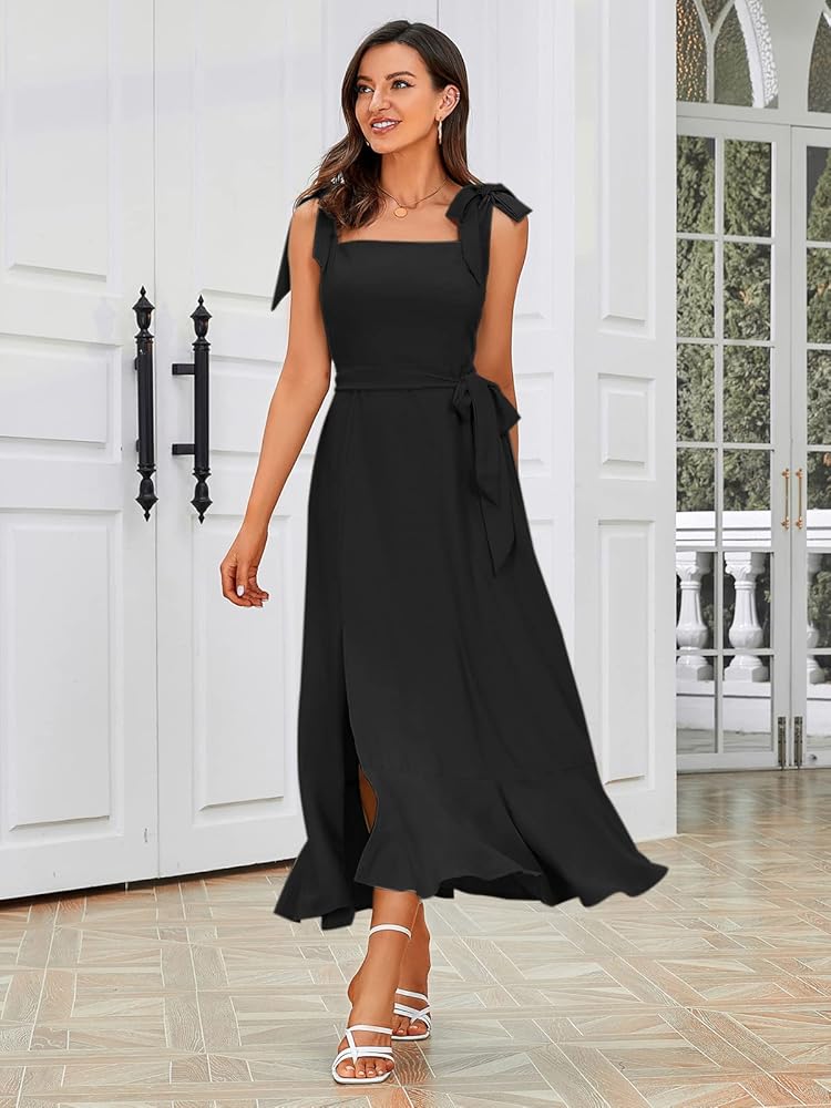 Feature: Bridesmaid dresses for wedding features shoulder tie,ruffle split,square neck, smocked shirred on back,the waist band is detachable and the adjustable straps are helpful as well