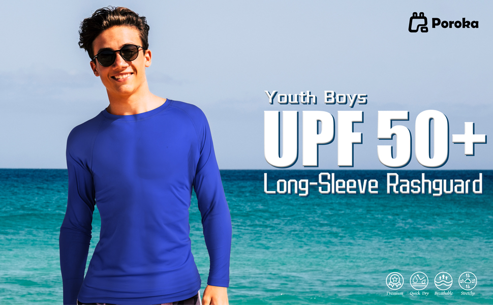 Quick-dry & Sun Protective: our boys' quick-dry swim shirt is crafted from a blend of 82% polyamide and 18% spandex, providing UPF 50+ sun protection for your little one, effectively shielding him from harmful rays; the fabric is quick-dry, lightweight and breathable, making it effortless to air-dry or tumble-dry in no time